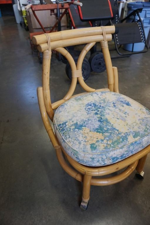 ROUND BAMBOO PATIO TABLE WITH 4 ROLLING CHAIRS - 4 FOOT DIAMETER 27 INCHES TALL