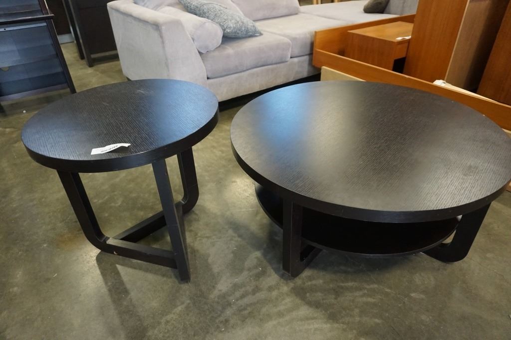 ROUND BROWN COFFEE AND END TABLE SET