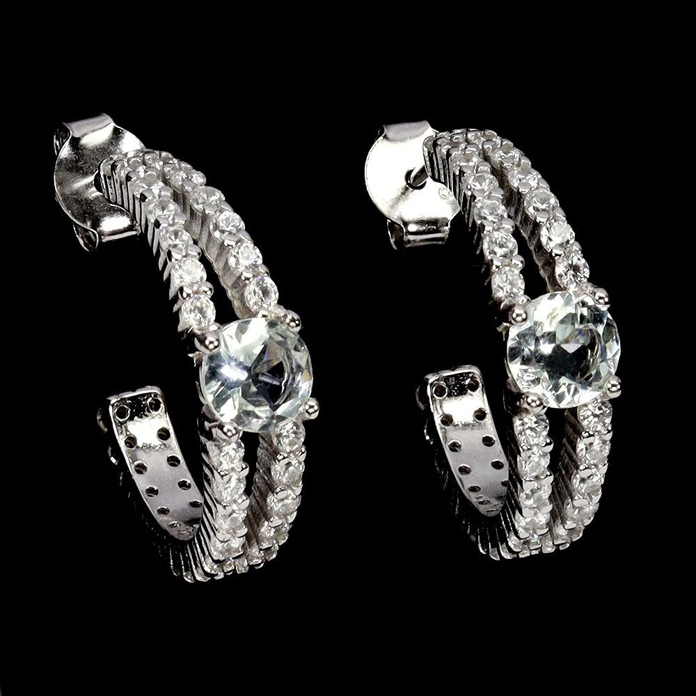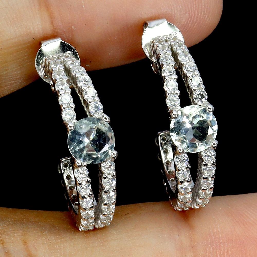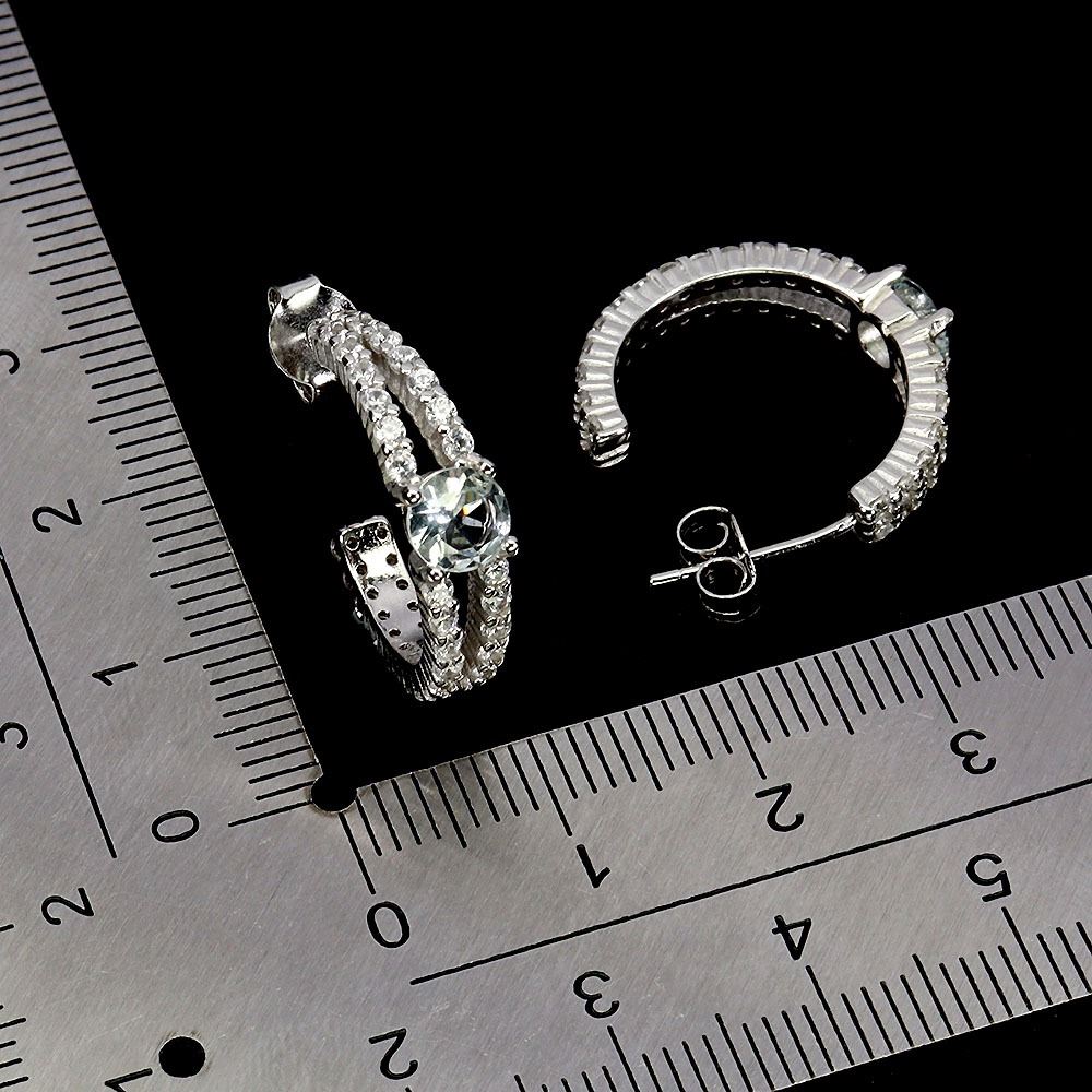 ROUND CUT AQUAMARINE EARRINGS IN 14K WHITE PLATED GOLD OVER 925 STERLING SILVER - APPRAISED REPLACEMENT VALUE