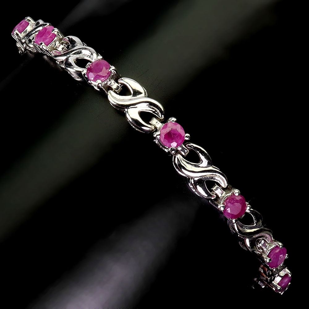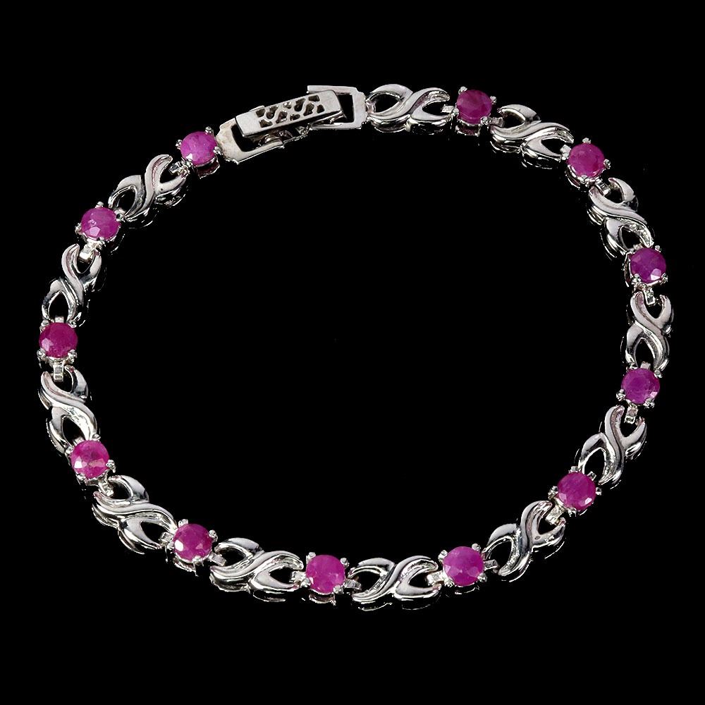 ROUND CUT RUBY BRACELET IN 14K WHITE PLATED GOLD OVER 925 STERLING SILVER - 7 INCHES - APPRAISED REPLACEMENT VALUE