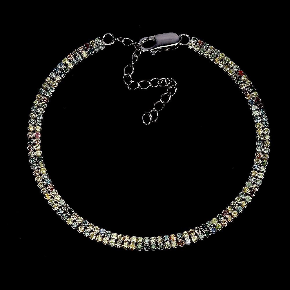 ROUND DIAMOND CUT SAPPHIRE BRACELET IN 14K WHITE PLATED GOLD OVER 925 STERLING SILVER - 7 INCHES LONG - APPRAISED REPLACEMENT VALUE