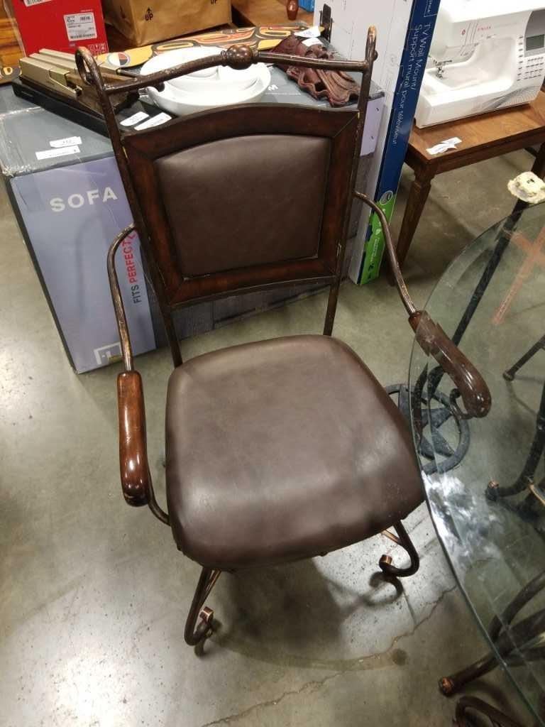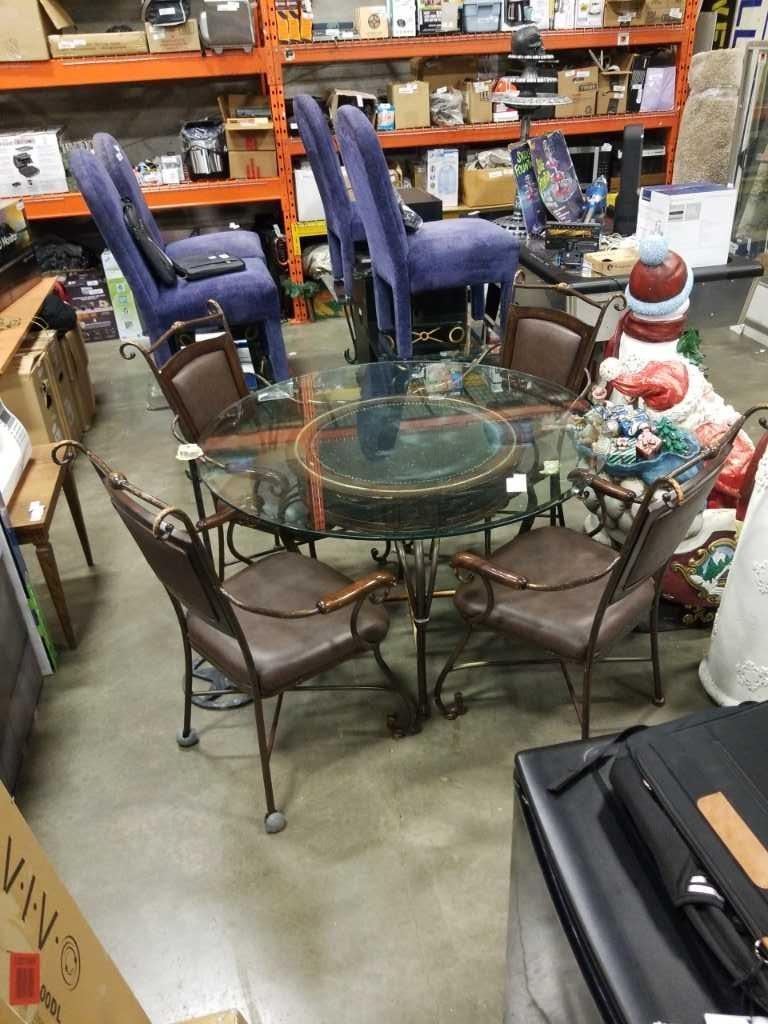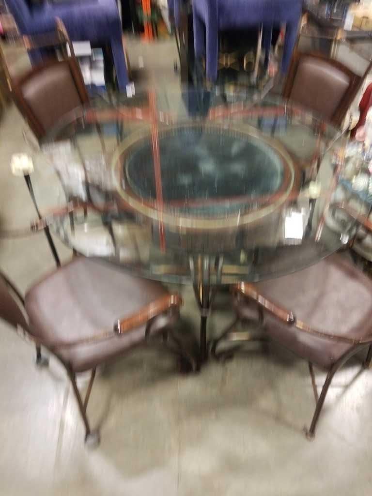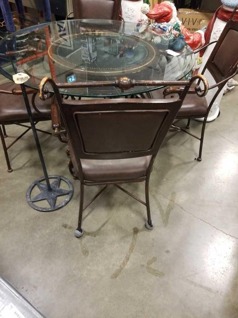 ROUND GLASS TOP TABLE AND 4 METAL CHAIRS