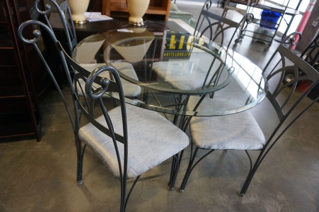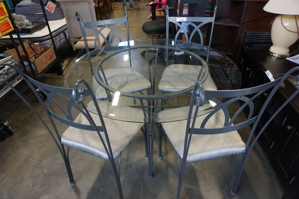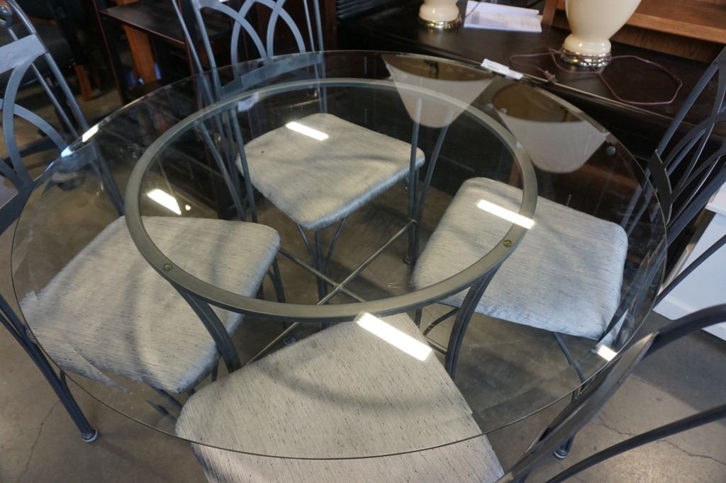ROUND GLASSTOP DINING TABLE WITH 4 CHAIRS
