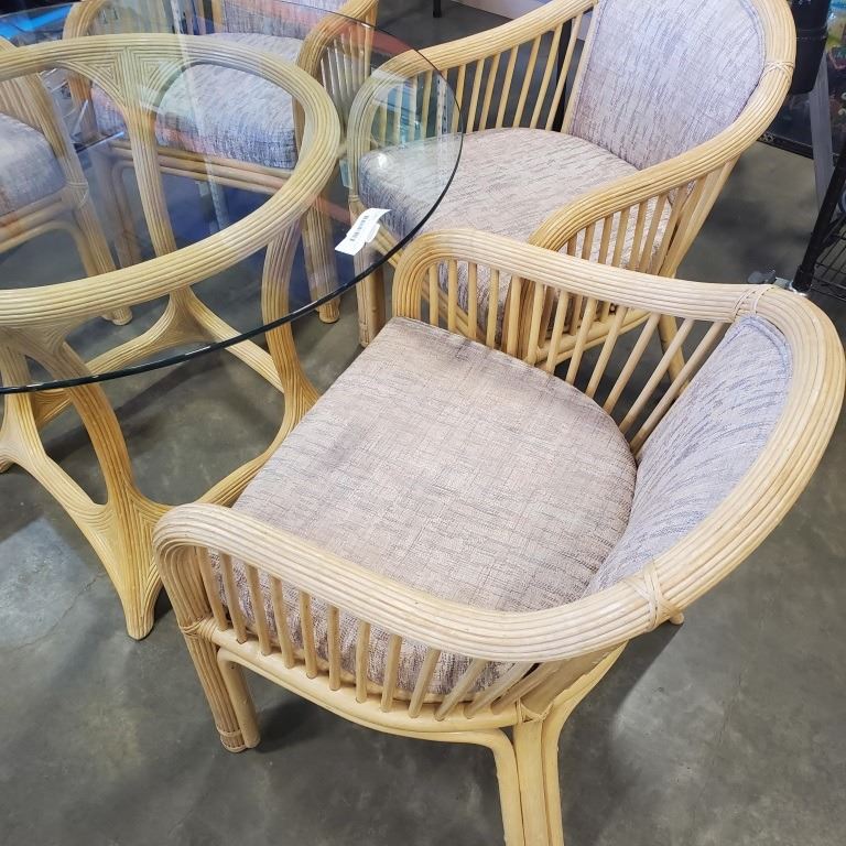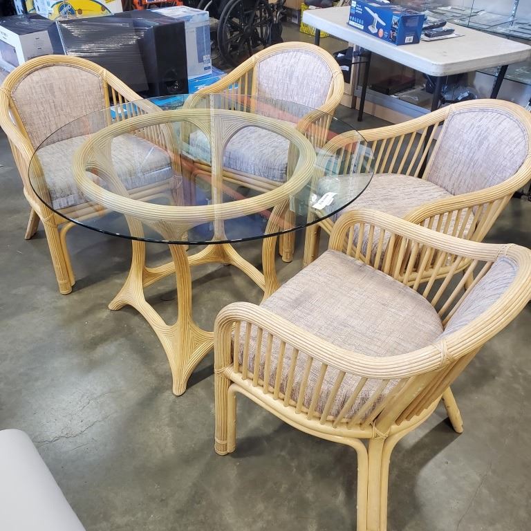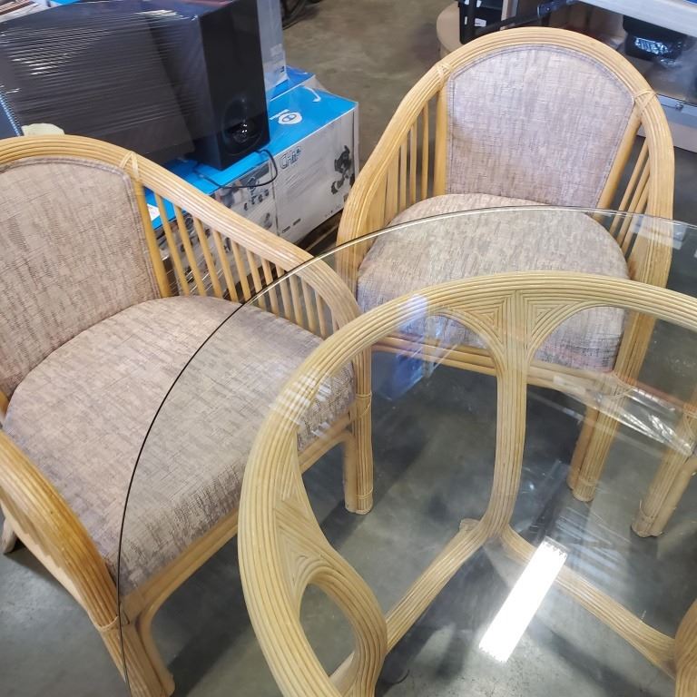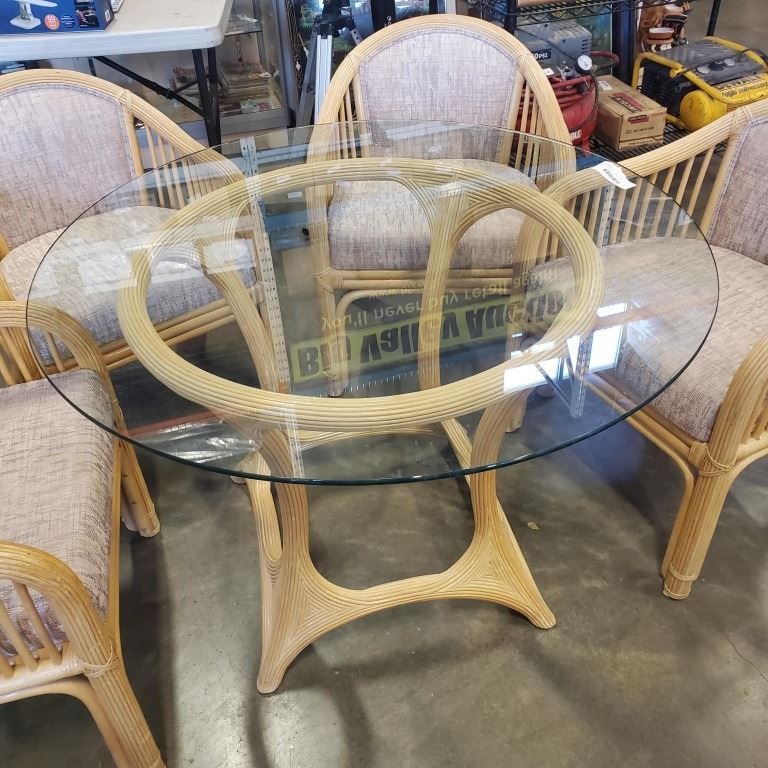 ROUND GLASSTOP DINING TABLE WITH 4 CHAIRS