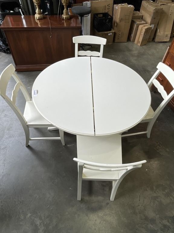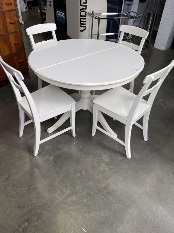 ROUND WHITE IKEA PEDESTAL DINING SET WITH 4 CHAIRS AND EXTENSION