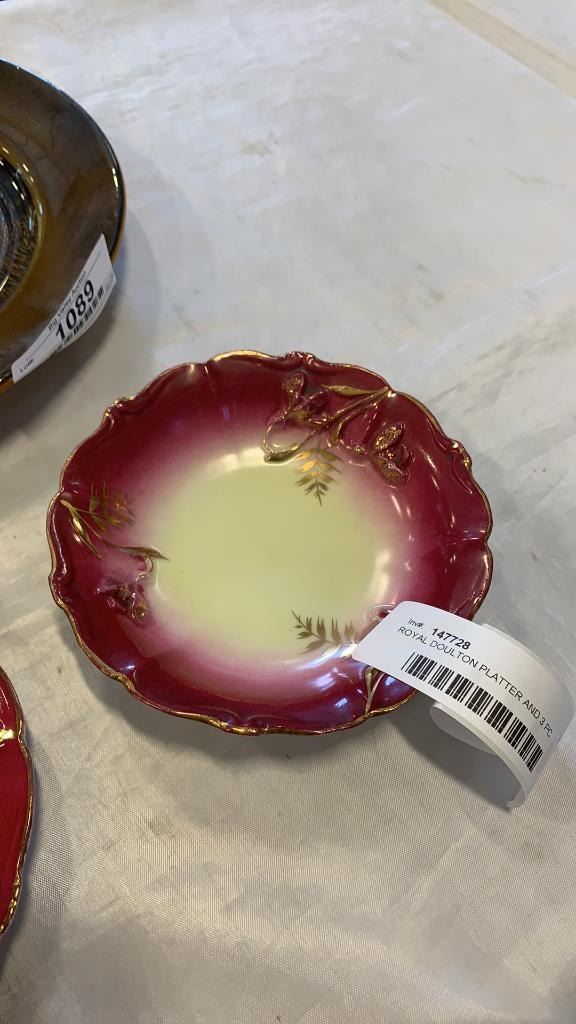 ROYAL DOULTON PLATTER AND 3 PC CREAMER SET