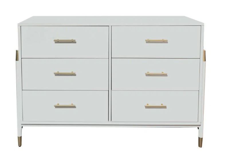 RS NEW Venus Sideboard - Retails: $1299 modern stylish sideboard with golden handles and gorgeous side poles; six drawers. Size roughly 47L 16D 34H. Located in store location