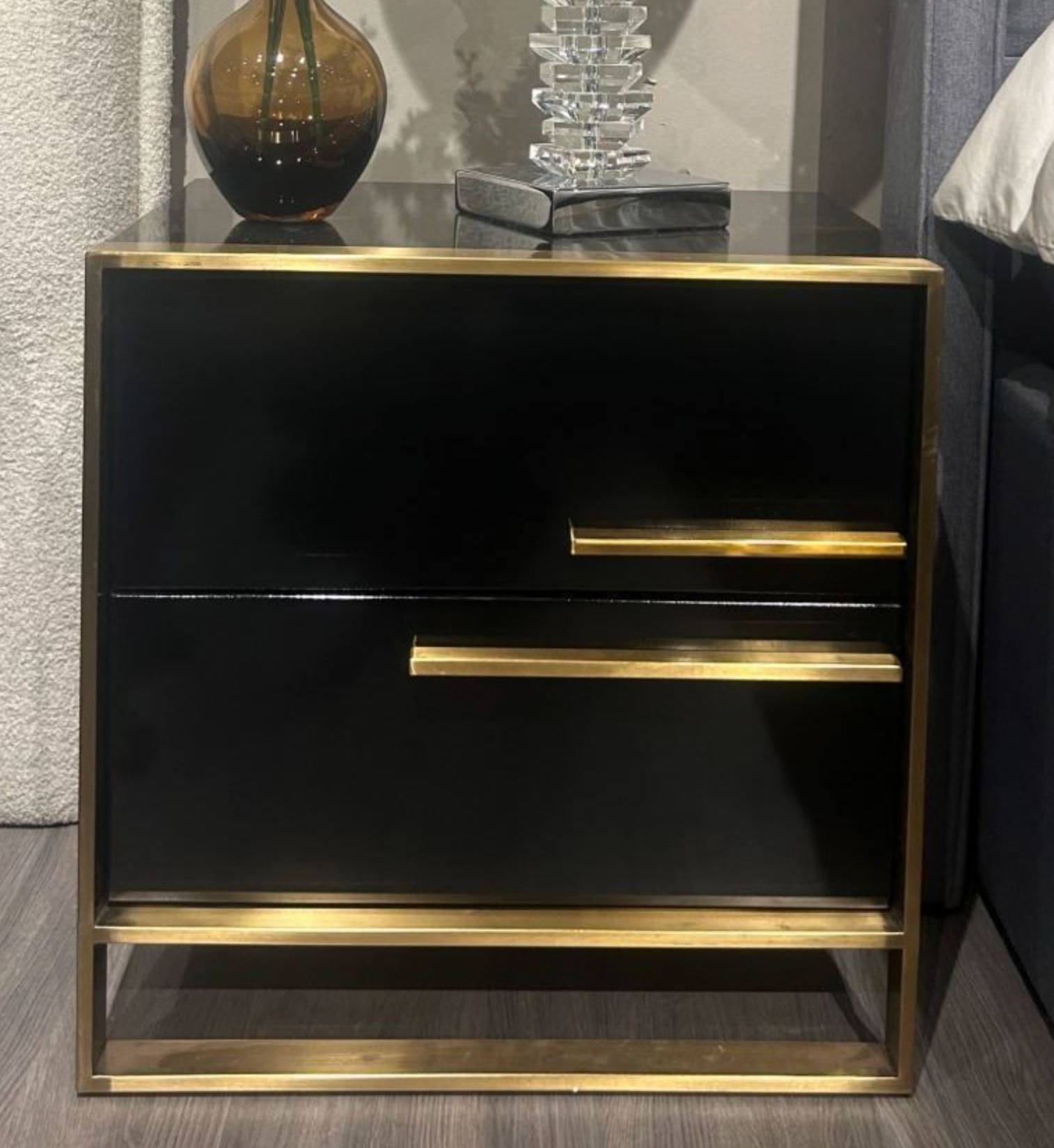 Modern nightstand with golden frame, size approx 20L x 16D x 20H. Colour options white or black. Selected variant: Black - Night Table. - located in Store