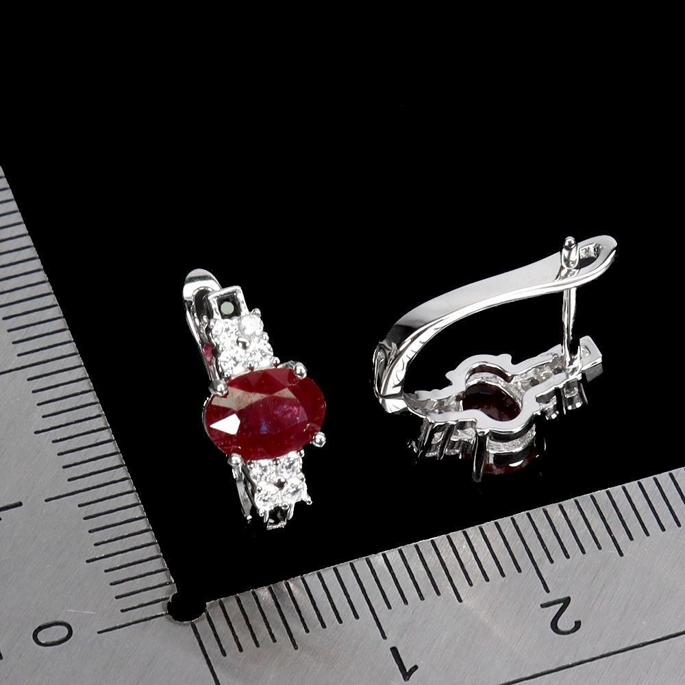 RUBY AND BLACK SPINEL EARRINGS IN 14K WHITE PLATED GOLD OVER 925 STERLING SILVER - APPRAISED REPLACEMENT VALUE