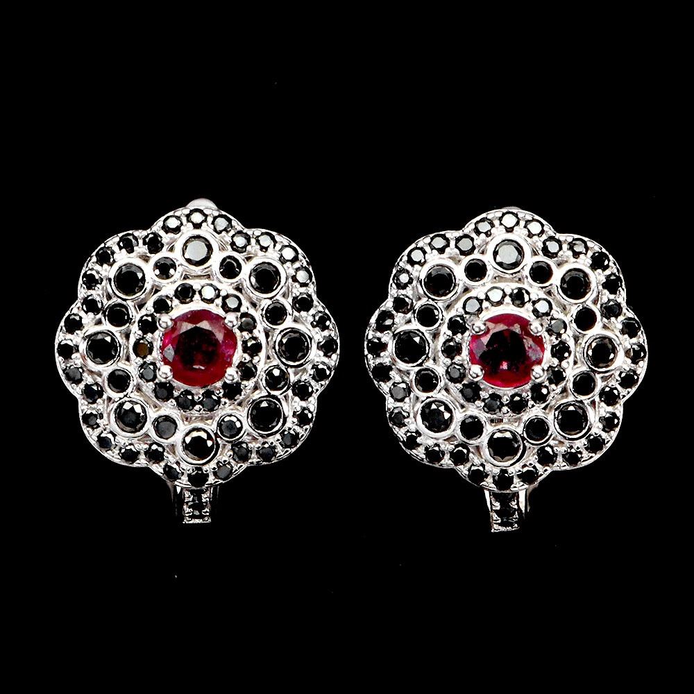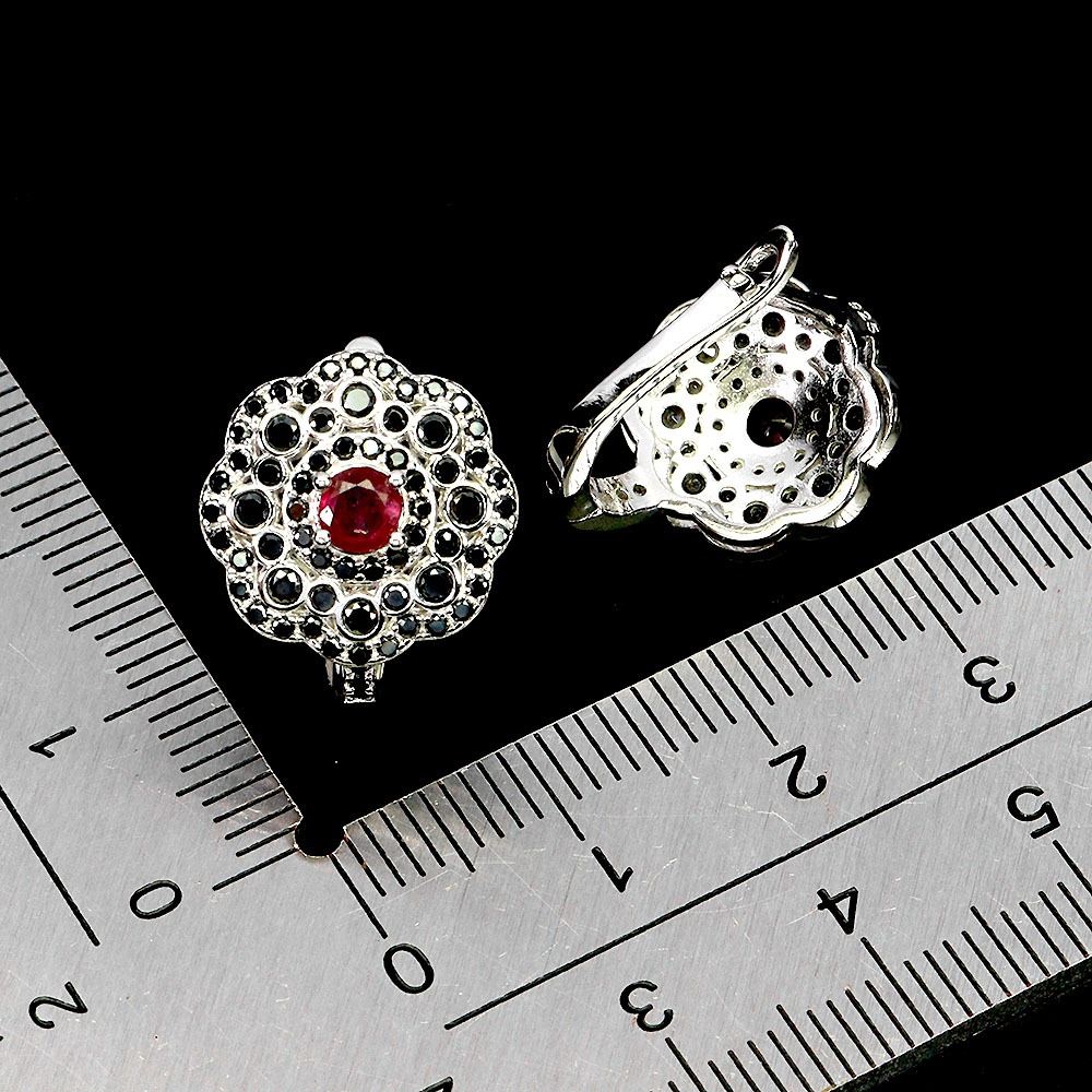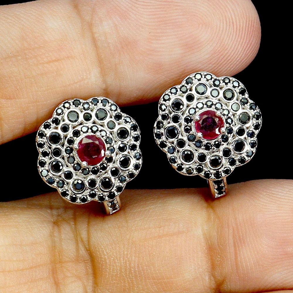 RUBY AND BLACK SPINEL EARRINGS IN 14K WHITE PLATED GOLD OVER 925 STERLING SILVER - APPRAISED REPLACEMENT VALUE
