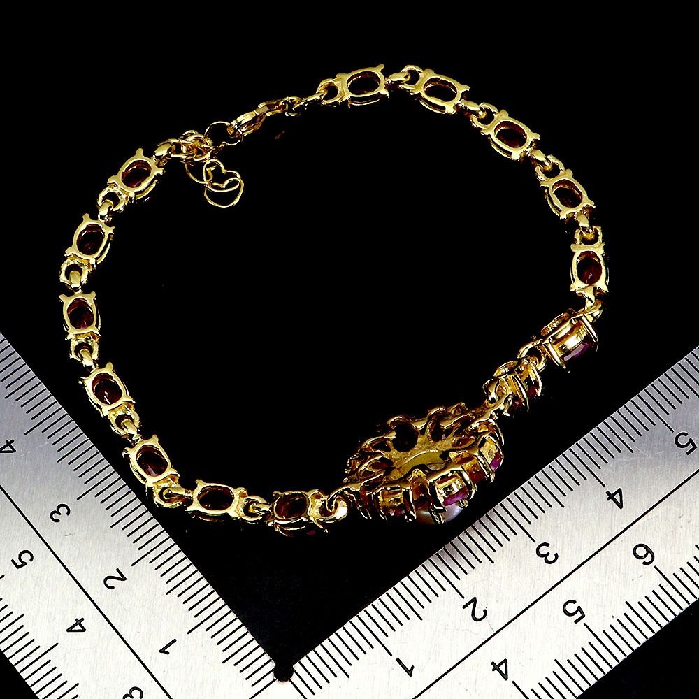 RUBY AND PEARL BRACELET IN 14K YELLOW PLATED GOLD OVER 925 STERLING SILVER - 8 INCHES LONG - APPRAISED REPLACEMENT VALUE