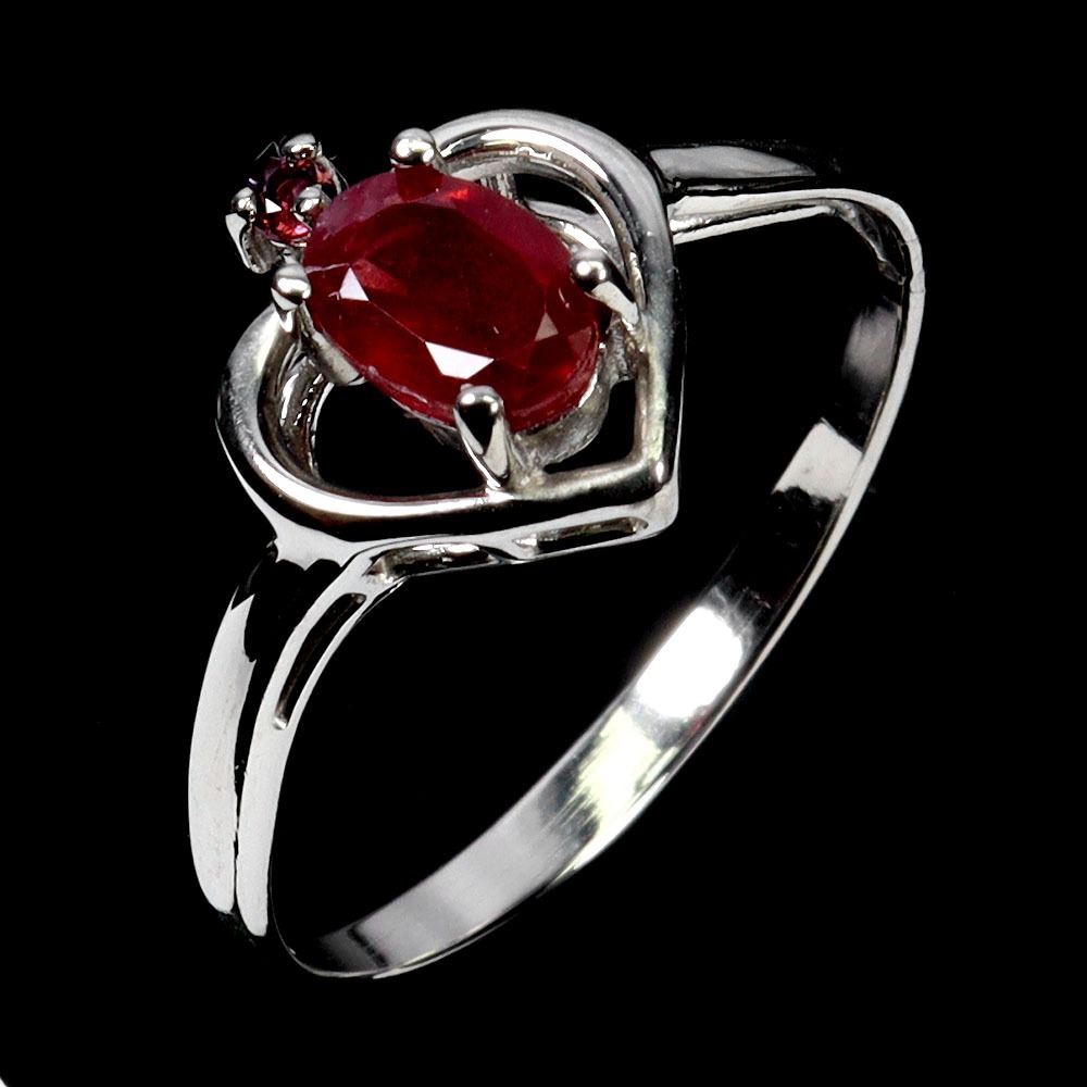 RUBY AND RHODOLITE GARNET RING IN 14K WHITE PLATED GOLD OVER 925 STERLING SILVER - SIZE 8 - APPRAISED REPLACEMENT VALUE