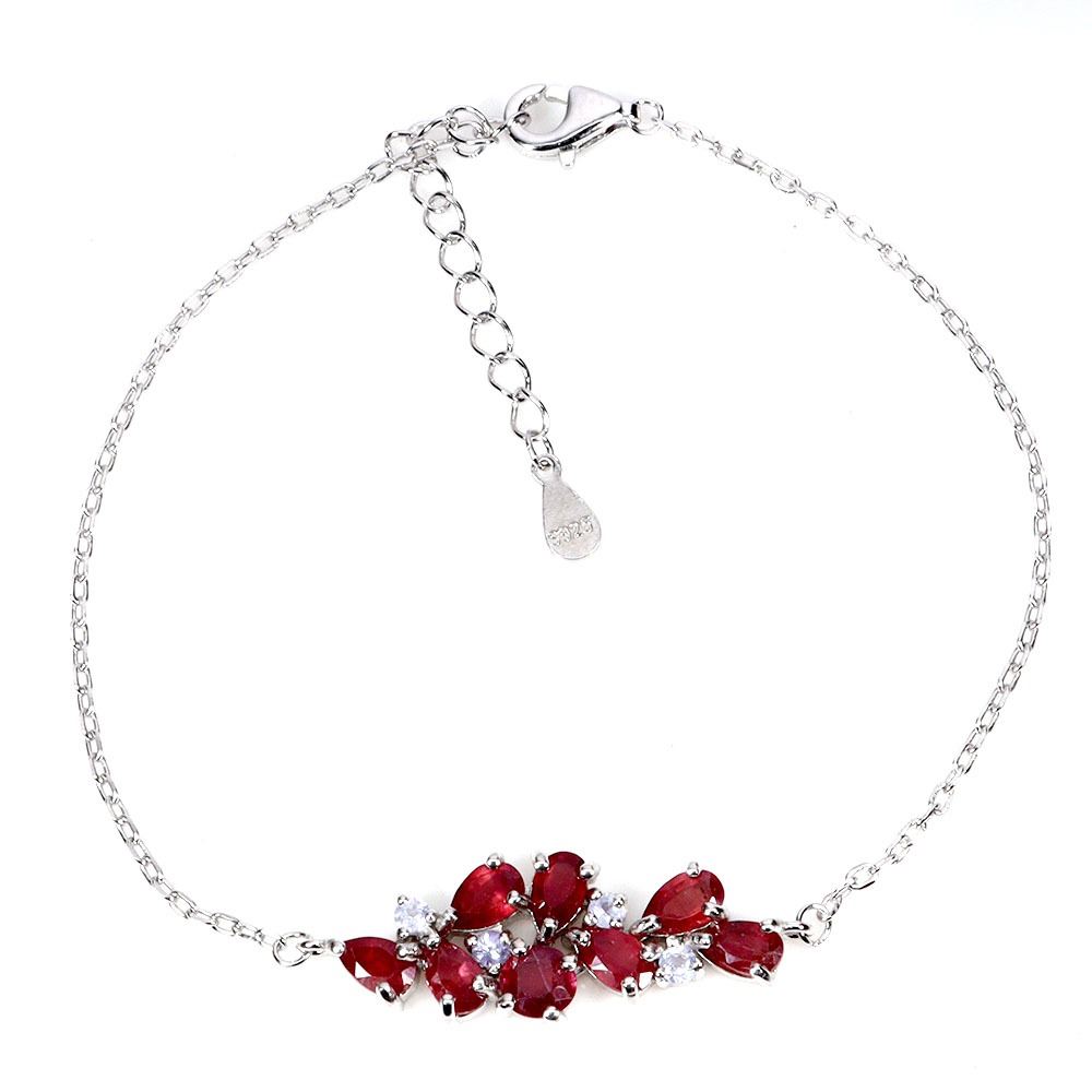 RUBY BRACELET IN 14K WHITE PLATED GOLD OVER 925 STERLING SILVER – 6.5 INCHES - APPRAISED REPLACEMENT VALUE