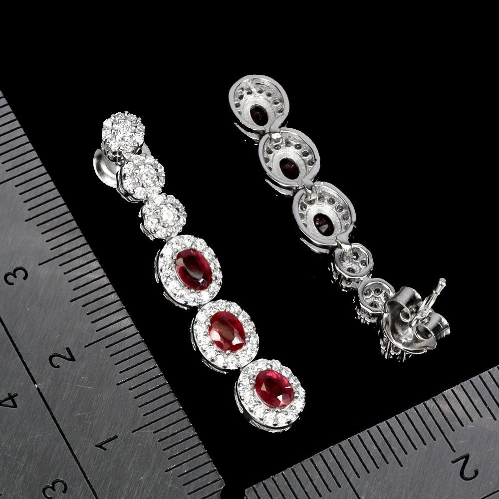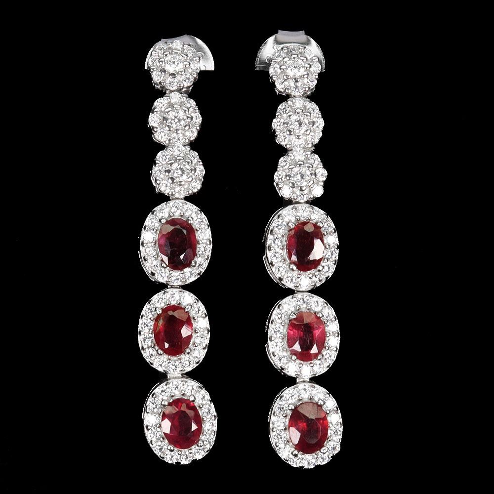 RUBY EARRINGS IN 14K WHITE PLATED GOLD OVER 925 STERLING SILVER - APPRAISED REPLACEMENT VALUE