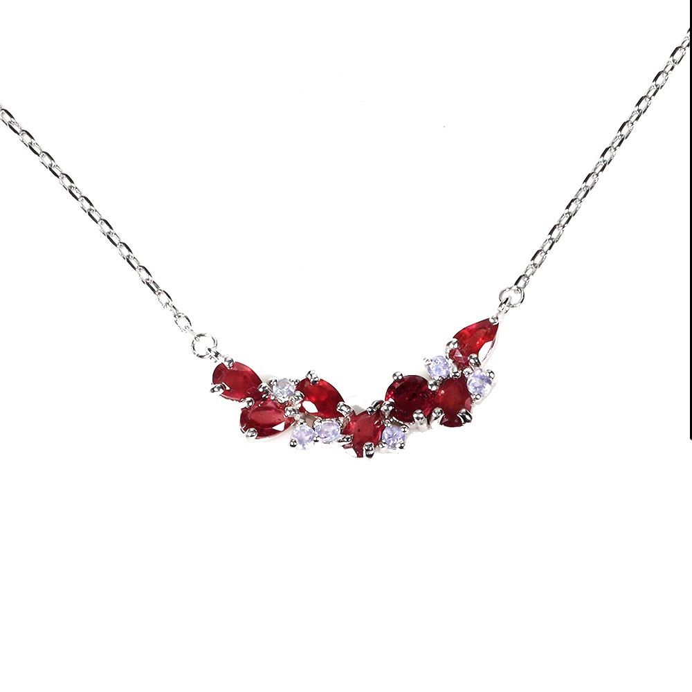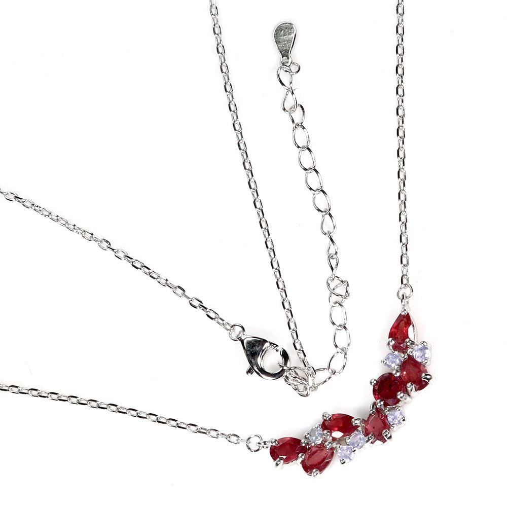 RUBY NECKLACE IN 14K WHITE PLATED GOLD OVER 925 STERLING SILVER - 17.5 INCHES LONG - APPRAISED REPLACEMENT VALUE