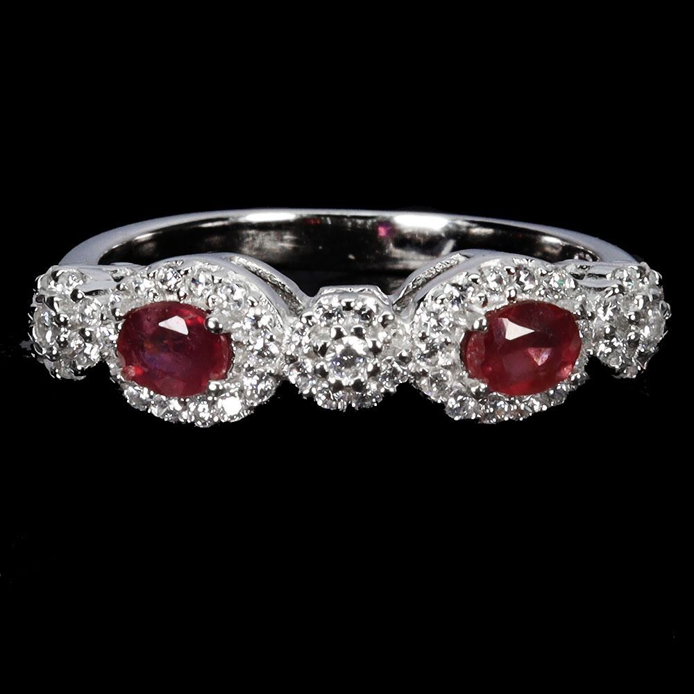 RUBY RING IN 14K WHITE PLATED GOLD OVER 925 STERLING SILVER - SIZE 7 - APPRAISED REPLACEMENT VALUE