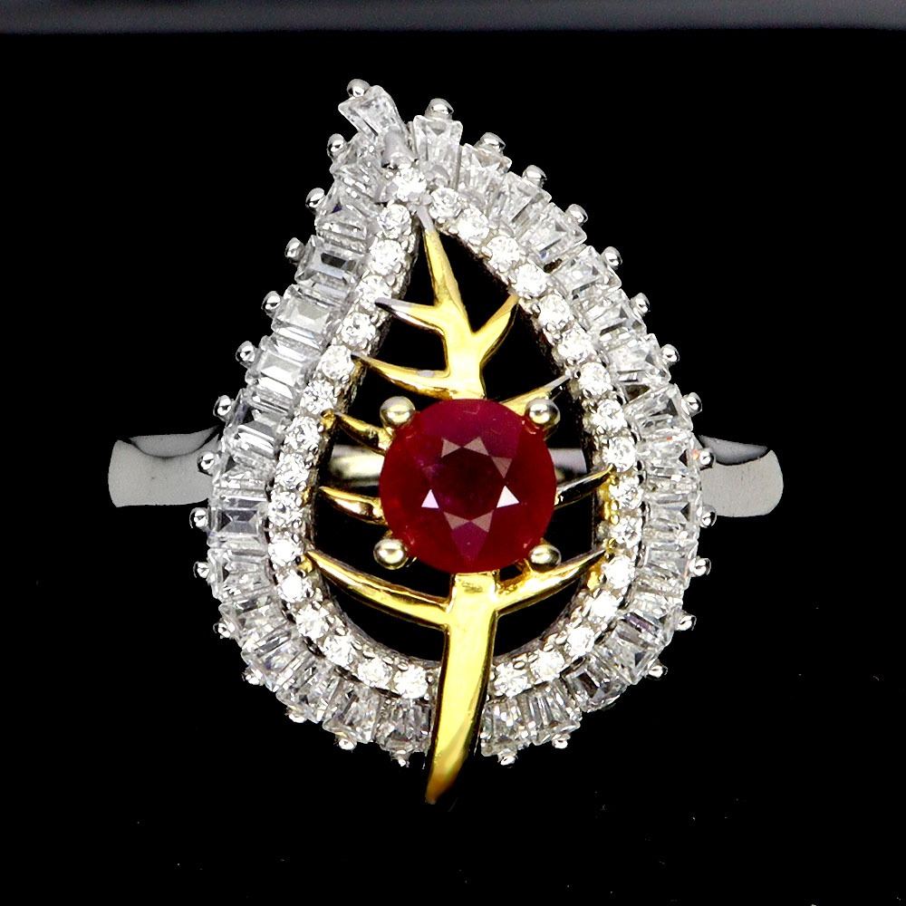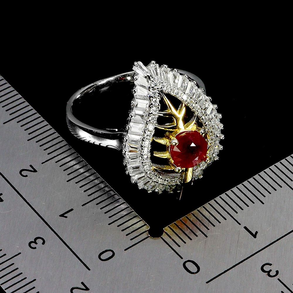 RUBY RING IN 14K WHITE PLATED GOLD OVER 925 STERLING SILVER - SIZE 8 - APPRAISED REPLACEMENT VALUE