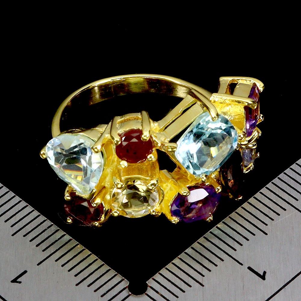 RUBY, TOPAZ, AMETHYST, CITRINE RING IN 14K YELLOW PLATED GOLD OVER 925 STERLING SILVER - SIZE 7 - AP