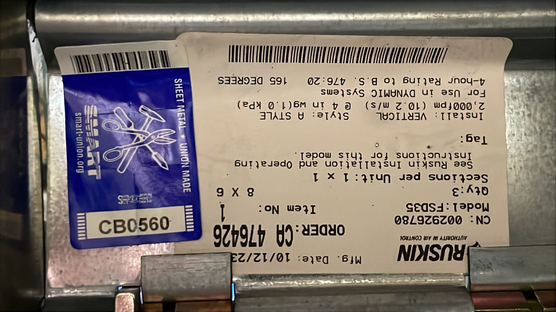 RUSKIN FSD35 COMBINATION FIRE & SMOKE DAMPER