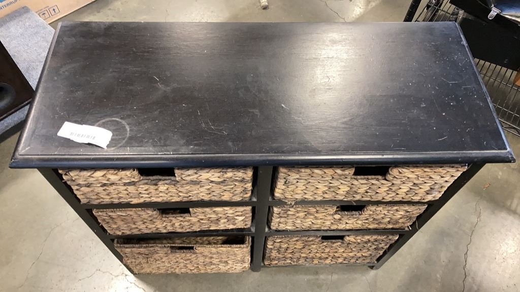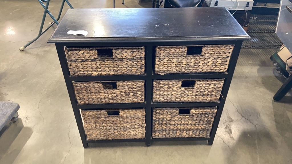 RUSTIC 6 DRAWER STORAGE UNIT WITH WOVEN DRAWERS