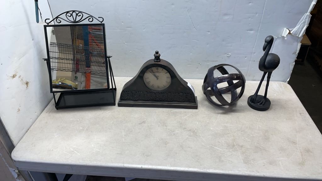 RUTHERFORD MANTLE CLOCK WITH DECORATIVE MIRROR FLAMINGO AND SPHERE