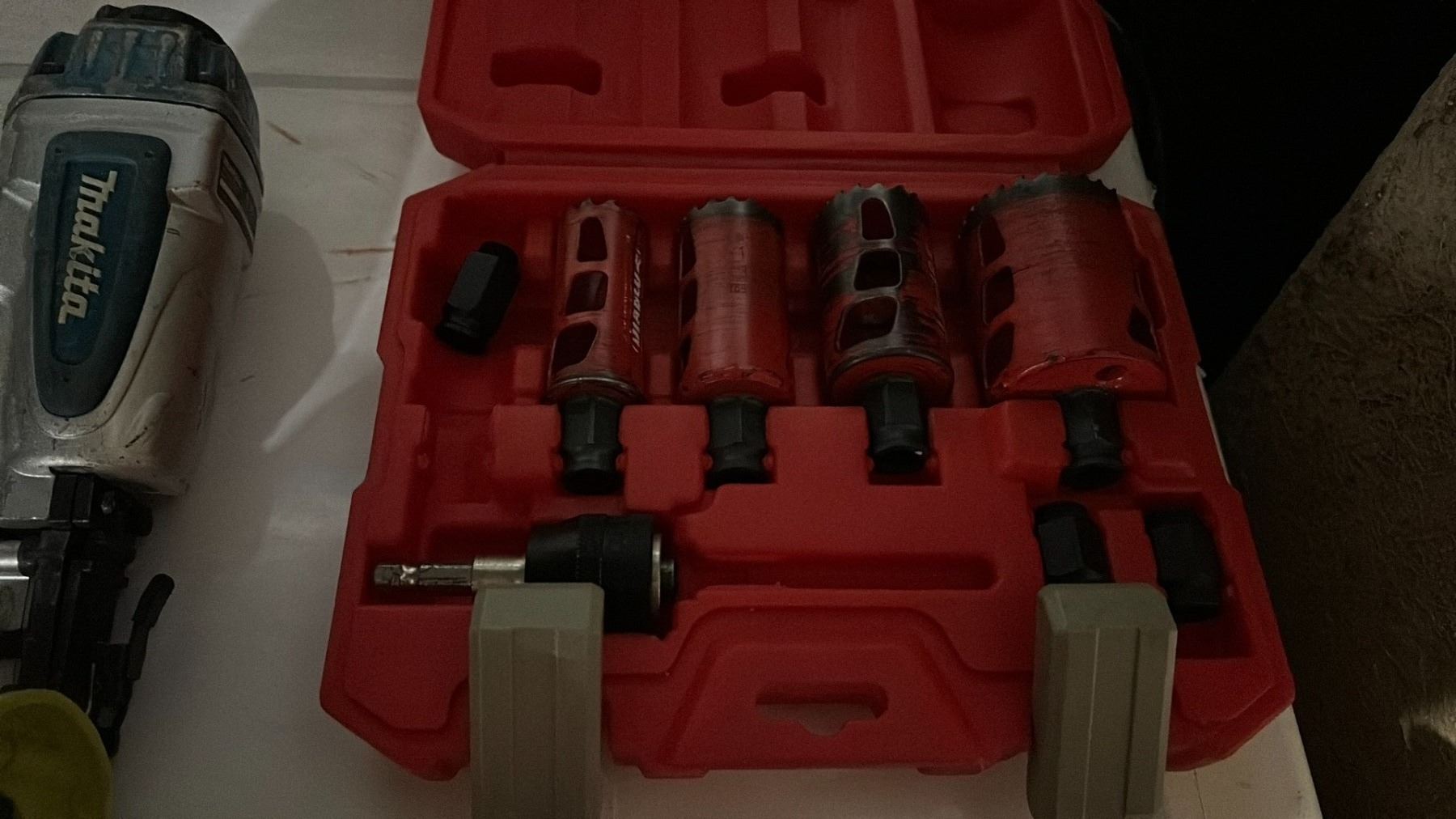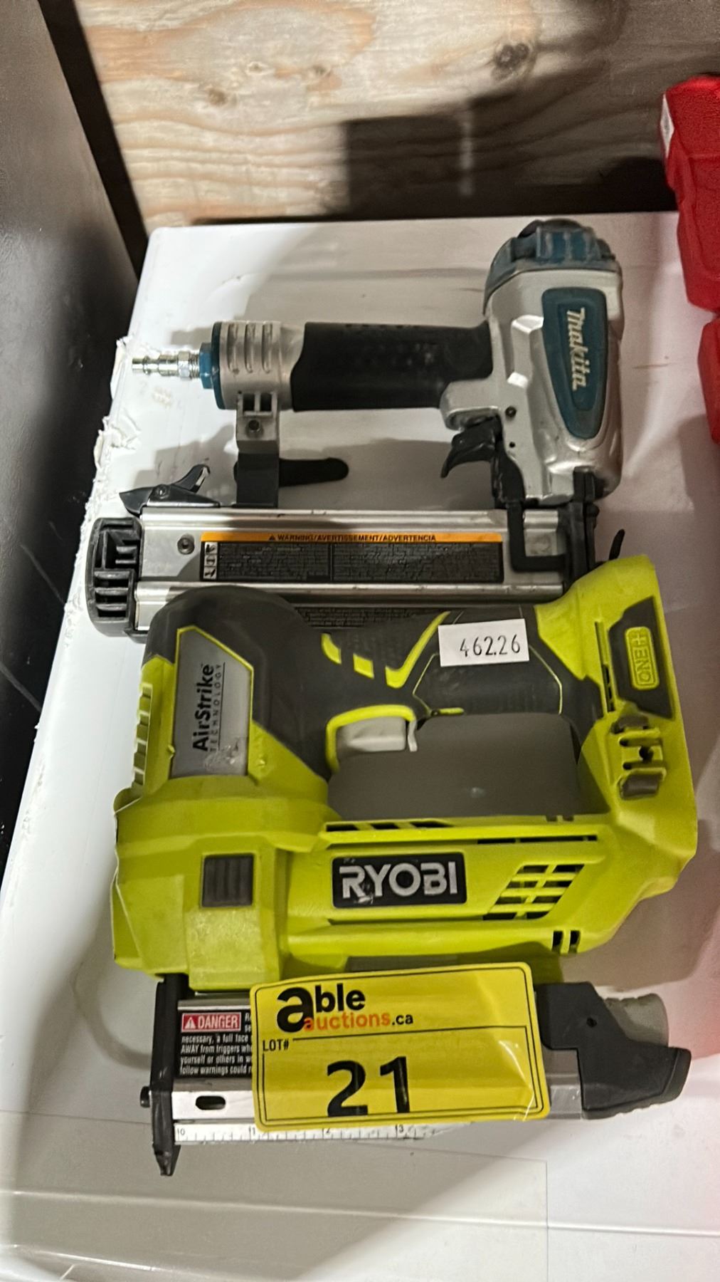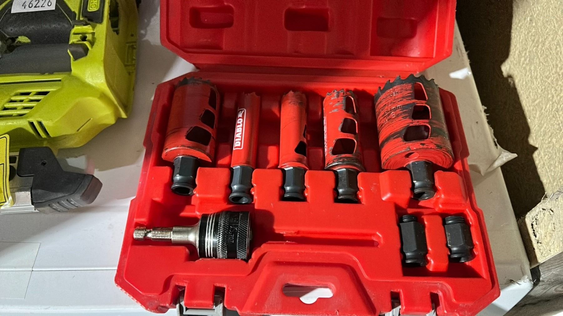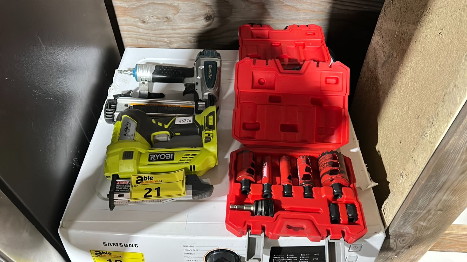 RYOBI 18V CORDLESS 23 GAUGE PIN NAILER WITH AIRSTRIKE TECHNOLOGY *NO BATTERY* AND MAKITA AF505N 2" 18 GAUGE PNEUMATIC BRAD NAILER AND 2 DIABLO HOLE SAW BIT KITS