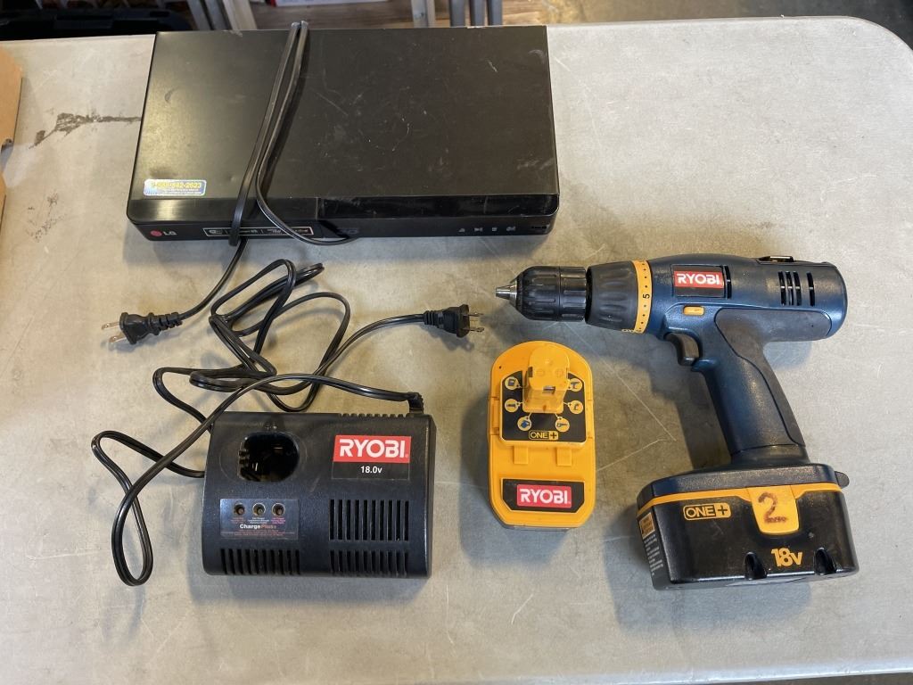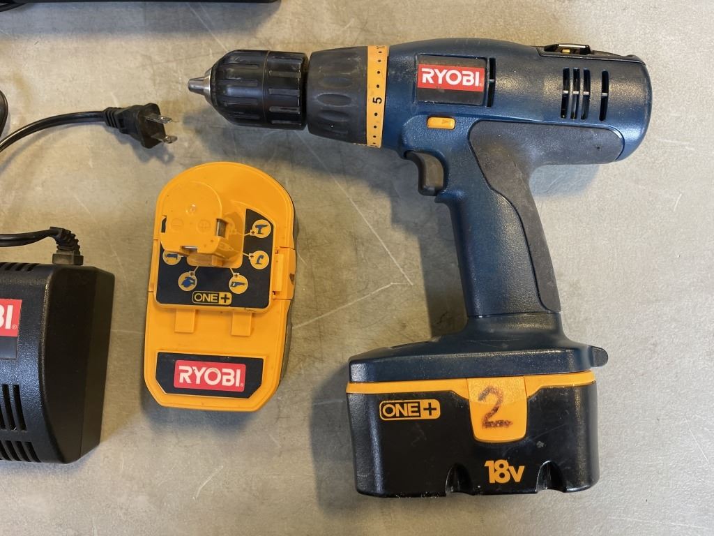 RYOBI 18V DRILL WITH 2 BATTERIES AND CHARGER, WORKING