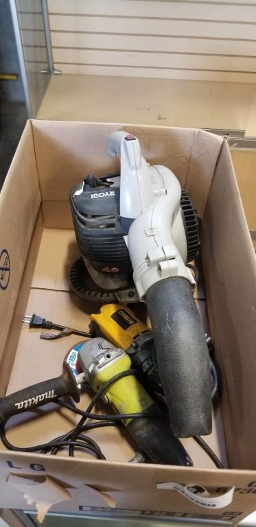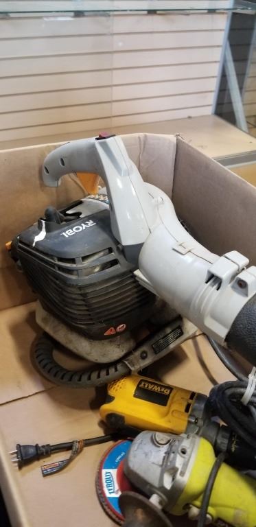 RYOBI BLOWER, GRINDER AND DEWALT DRILL