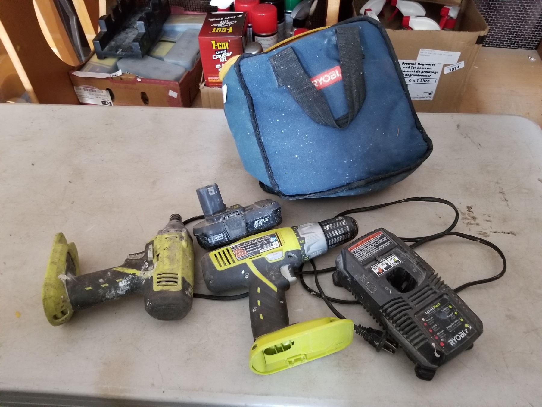 RYOBI CORDLESS IMPACT GUN AND DRILL W/ BATTERIES AND CHARGER