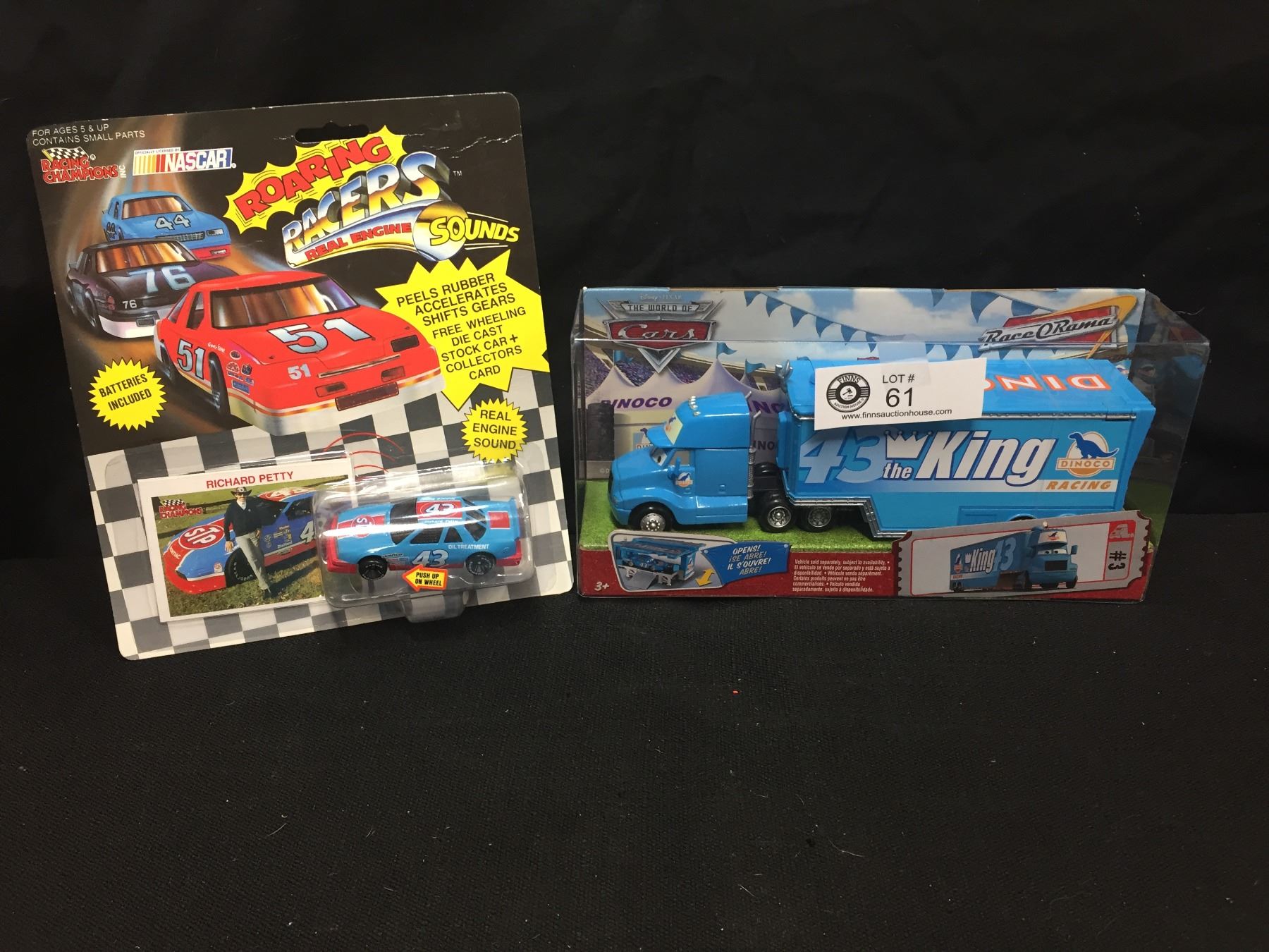 Racing Lot. Disney's Cars Number 43 King. Semi Truck Still In the Package, Plus Richard Petty Die Cast Car Still in the Package