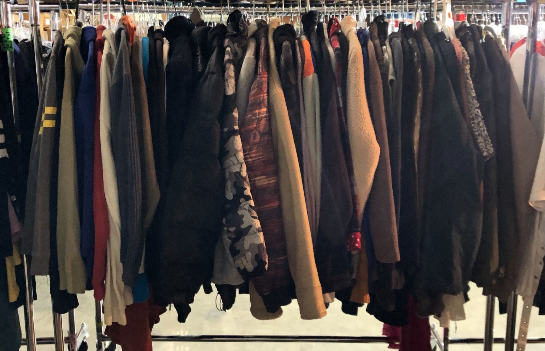 Rack lot full of assorted clothes - includes high end men & women jackets / cardigans / Adidas sweater etc (approx 50 pcs)