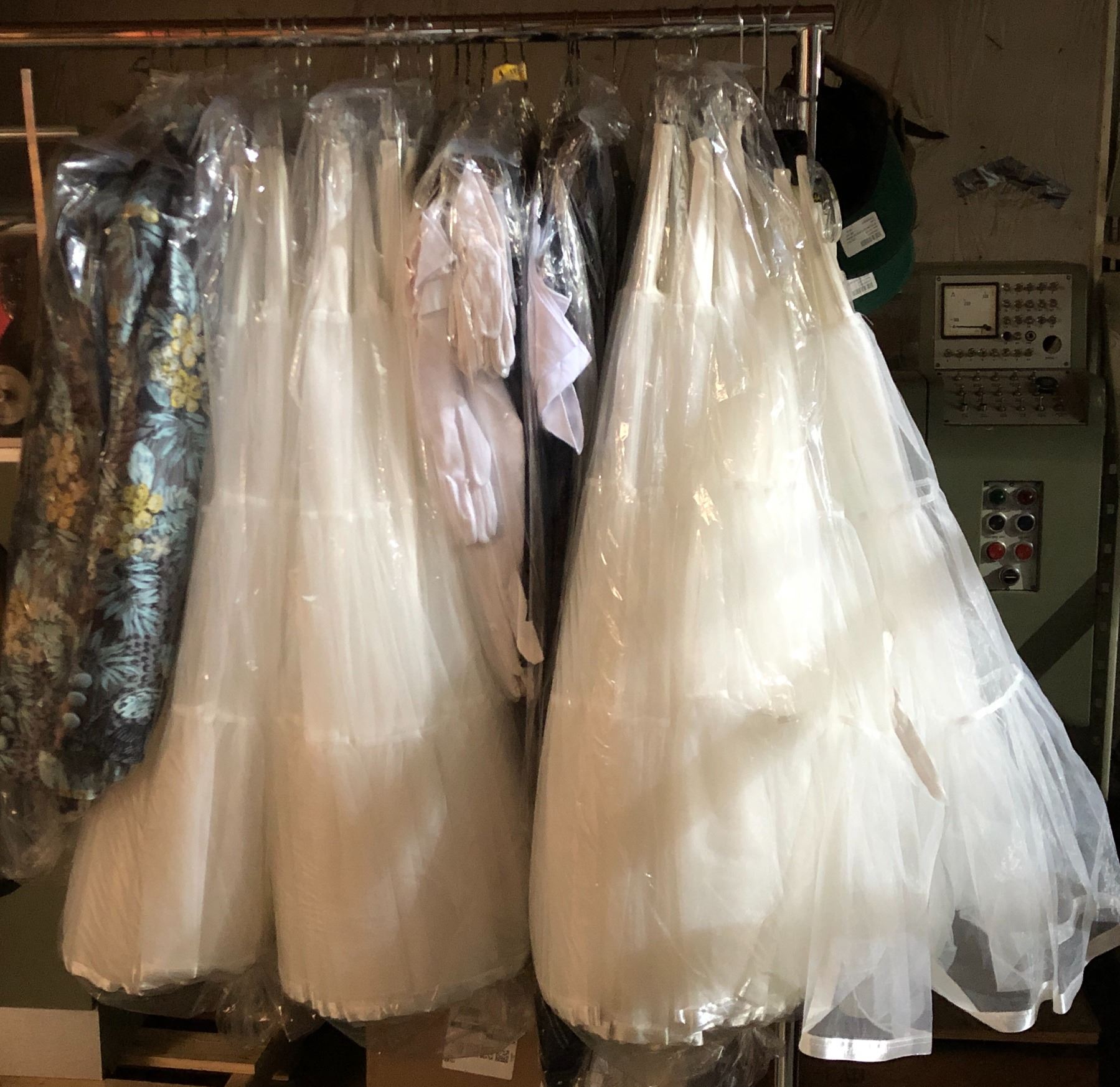 Rack lot of assorted wedding outfits - includes white dress / blazers etc (approx 30 pcs)