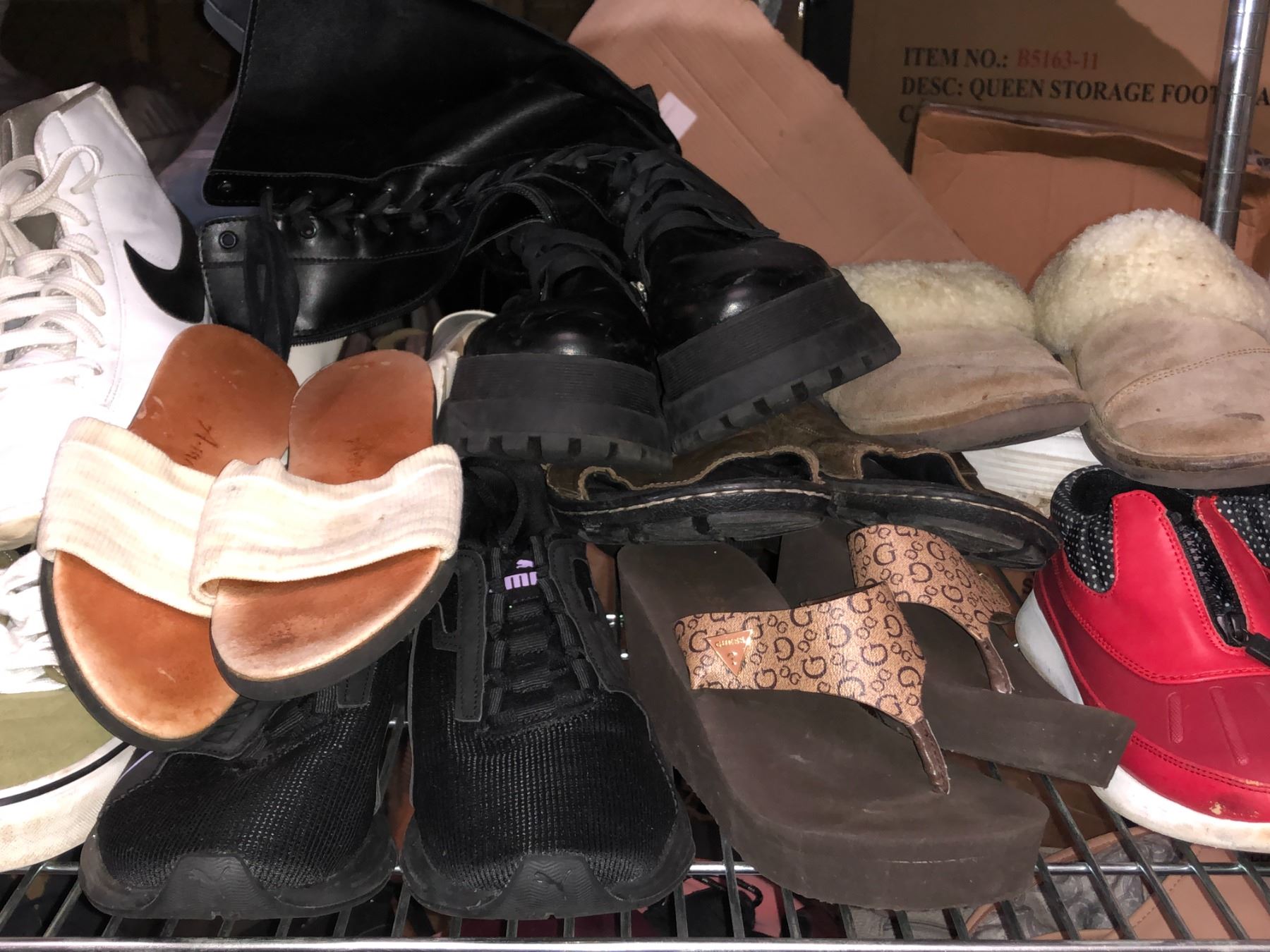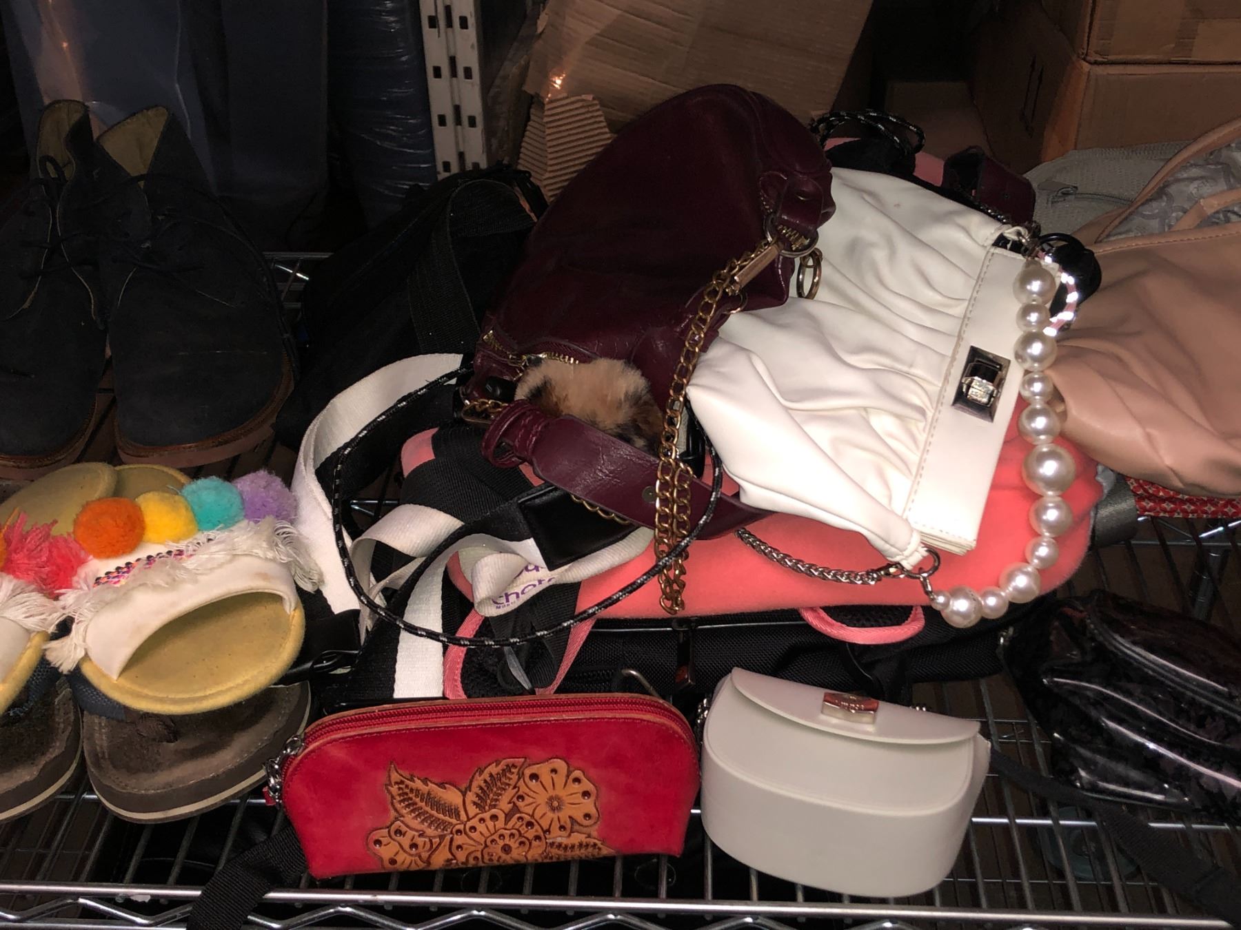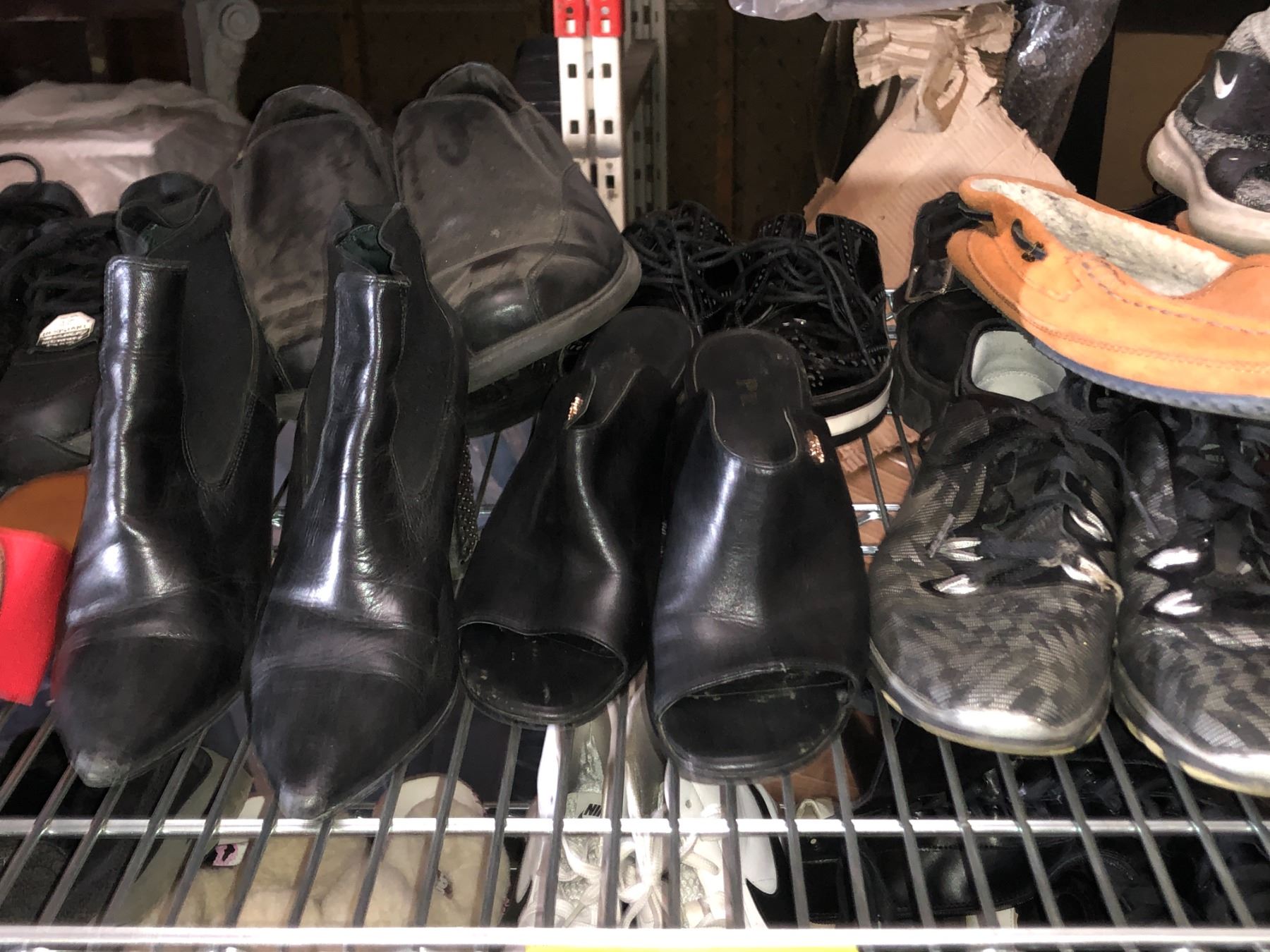 Rack of assorted shoes - approx 49 pairs & group of purses & bags