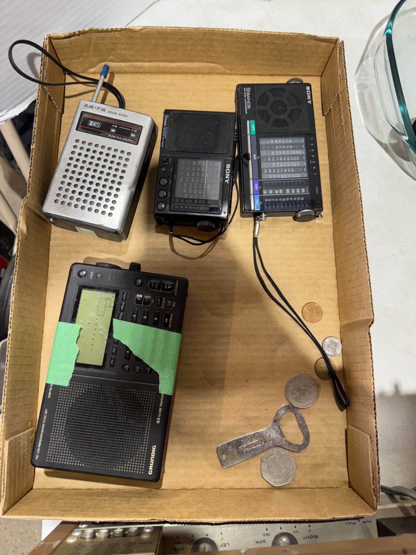 Radio's and Coins and a bottle opener
