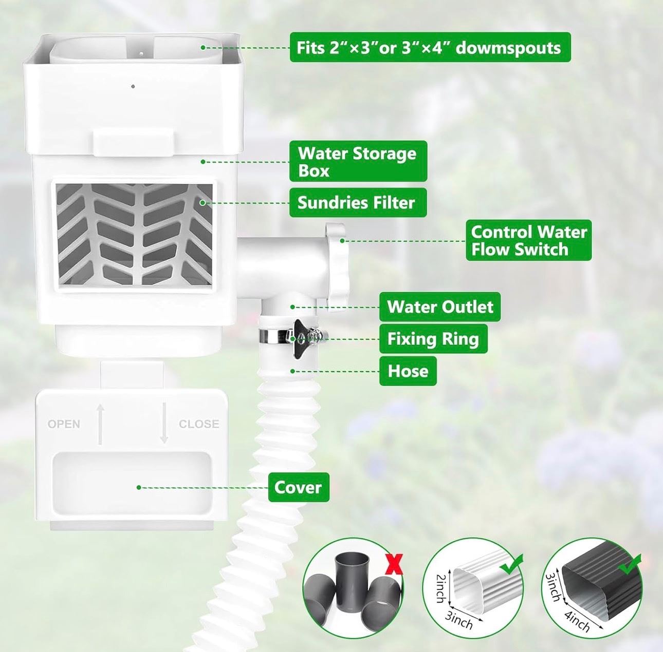 Rain Water Diverter Kit Collection System for 2x3 or 3x4 Gutters and Downspouts - New