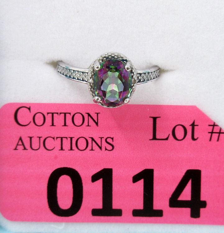 Oval cut topaz & 2 side diamonds set in sterling silver. Retail value $360.