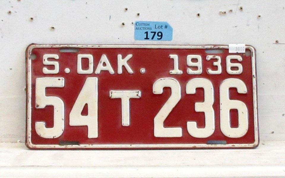 Rare 1936 S. Dakota License Plate - Single Plate