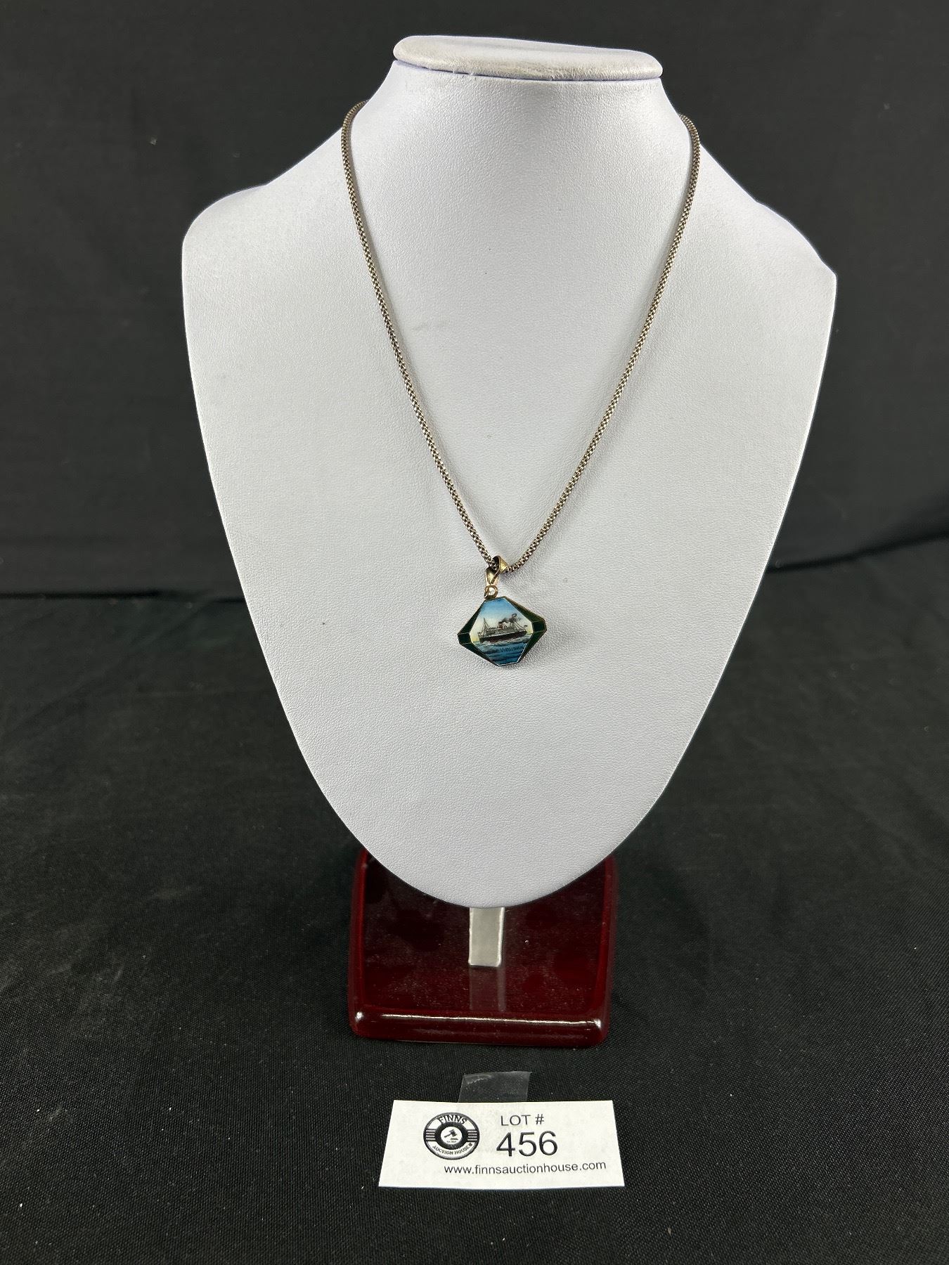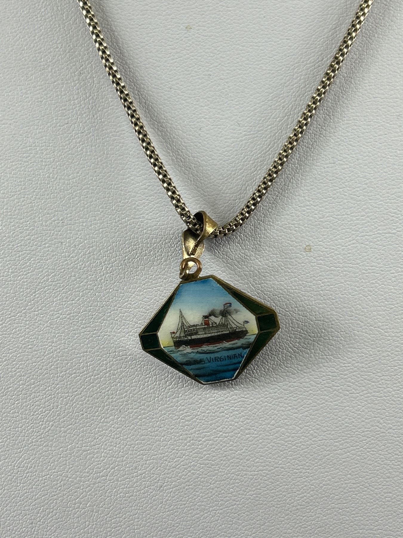 Rare Antique Enamel RMS Virginia Ship Pendant w/ Chain Necklace