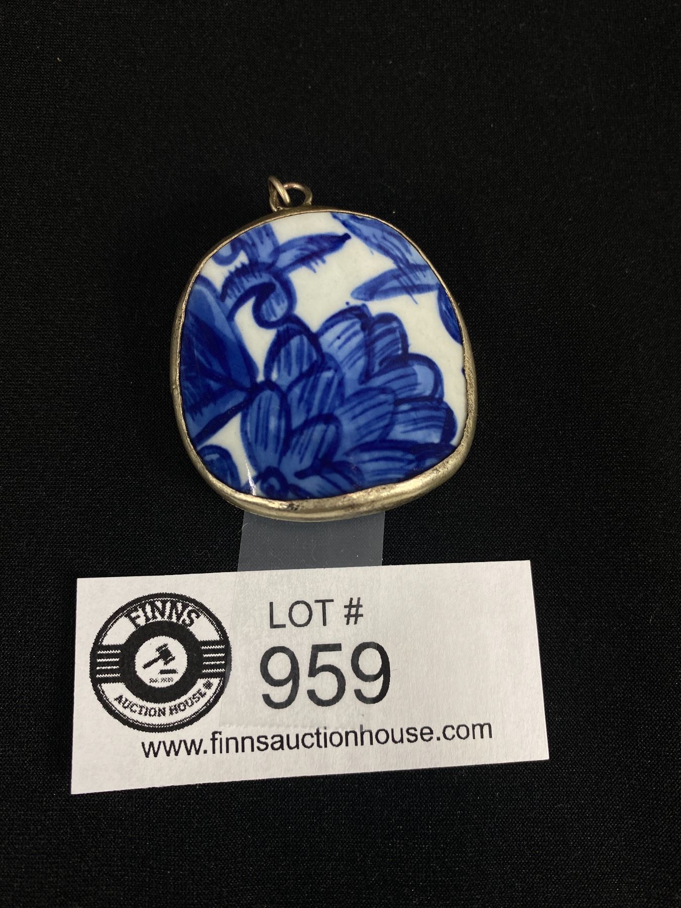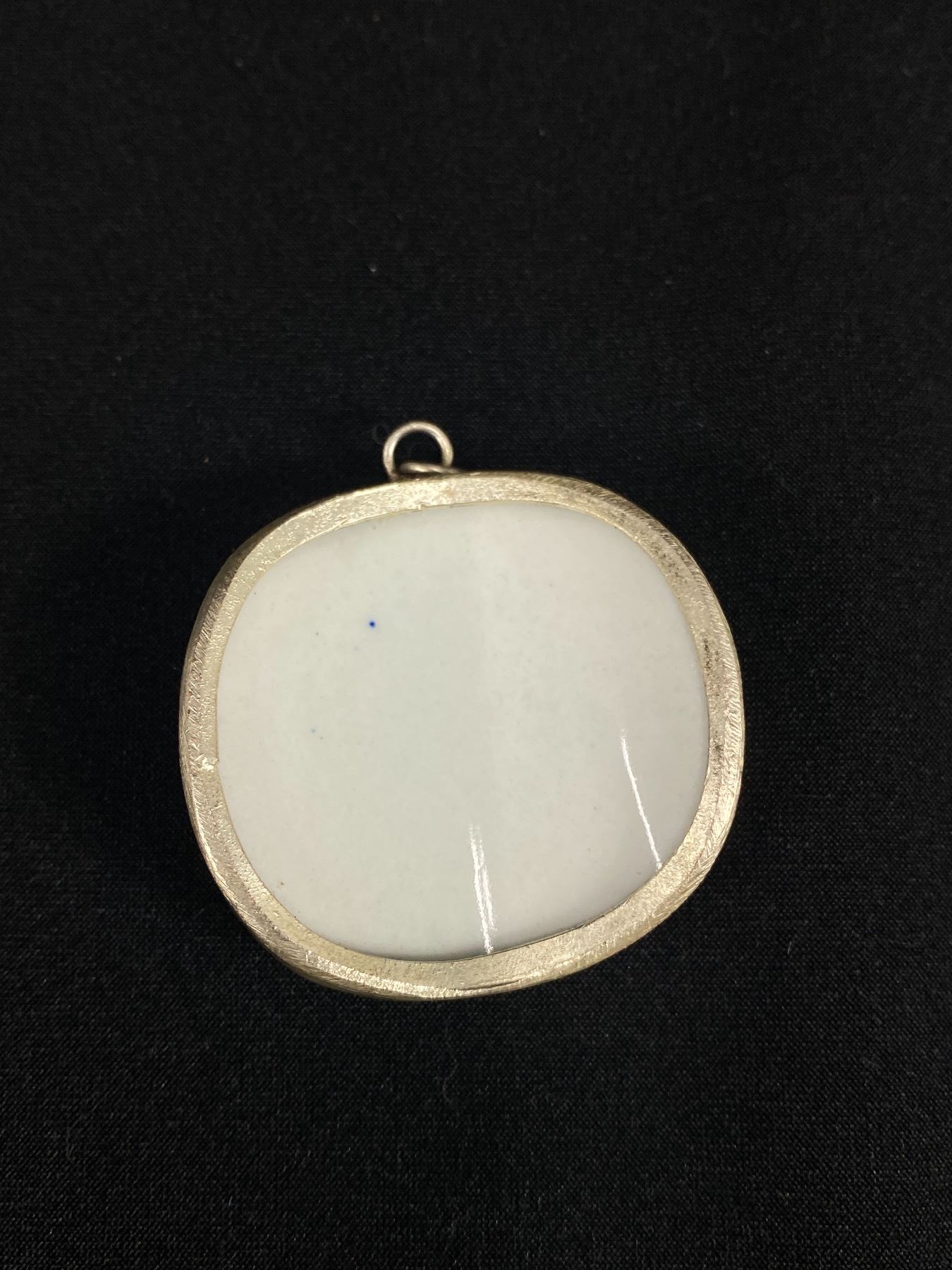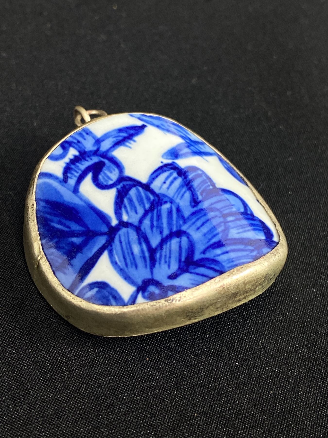 Rare Ming Dynasty Approx. 300-500 Years Old Porcelain Shard Made into a Silver Pendant
