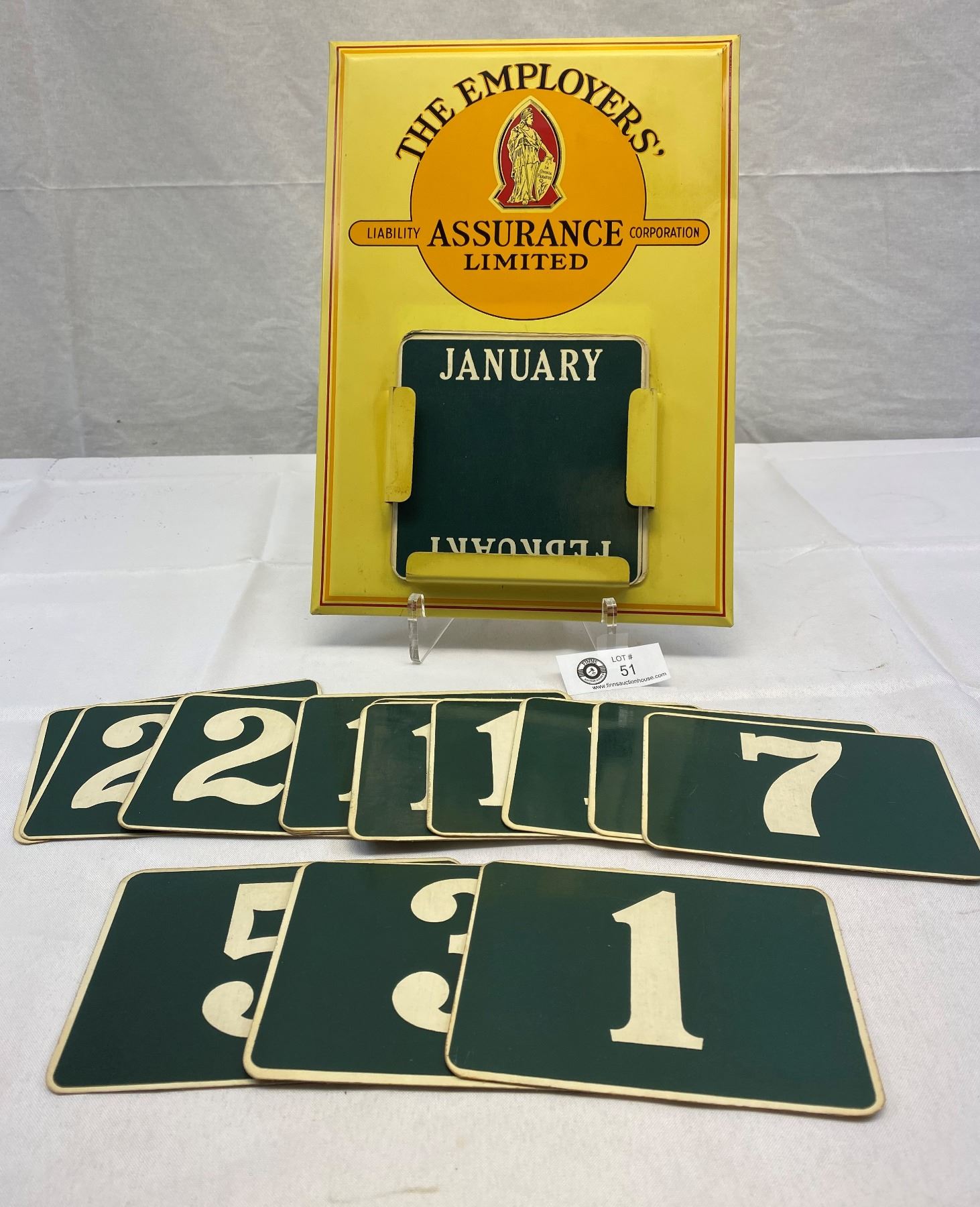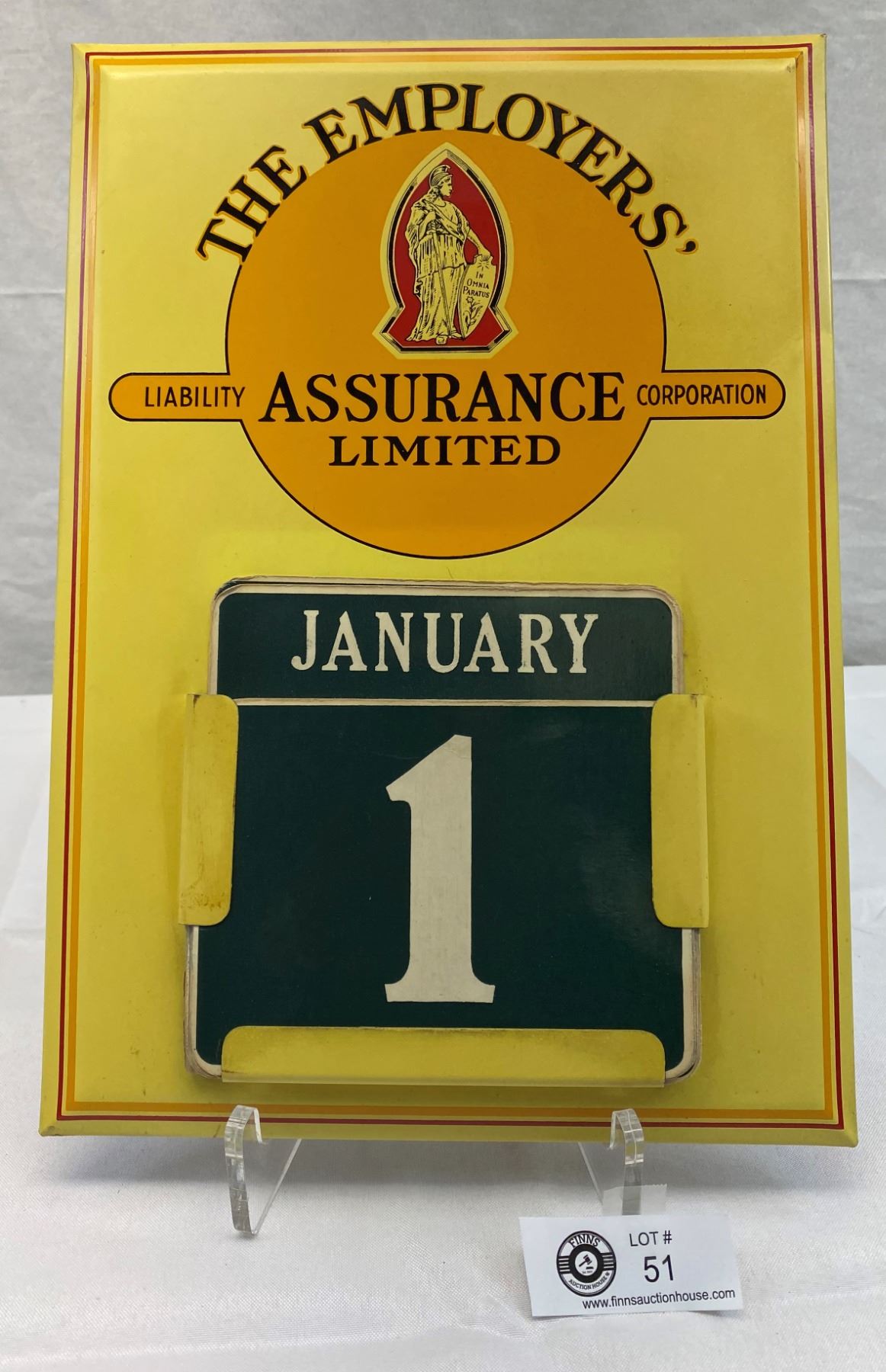 Rare The Employers' Liability Assurance Corporation Limited Perpetual Calendar, ST. Thomas Metal Signs, Canada, Great Shape And Complete