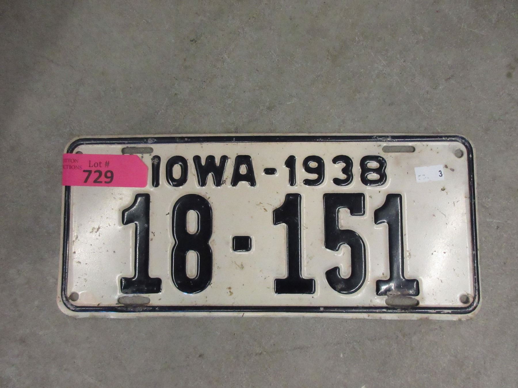 Rare USA 1938 Iowa License Plate - Single Plate