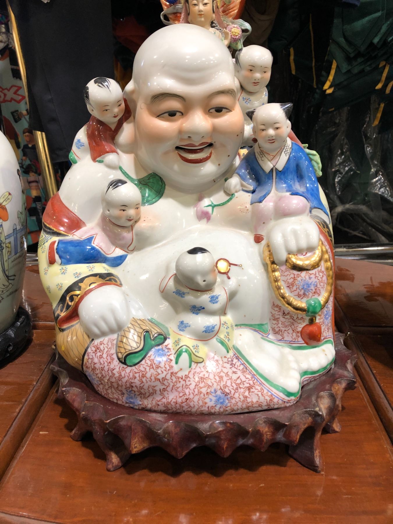 Rare Vintage Chinese Porcelain Fertility Buddha with 5 children - approx 11" height