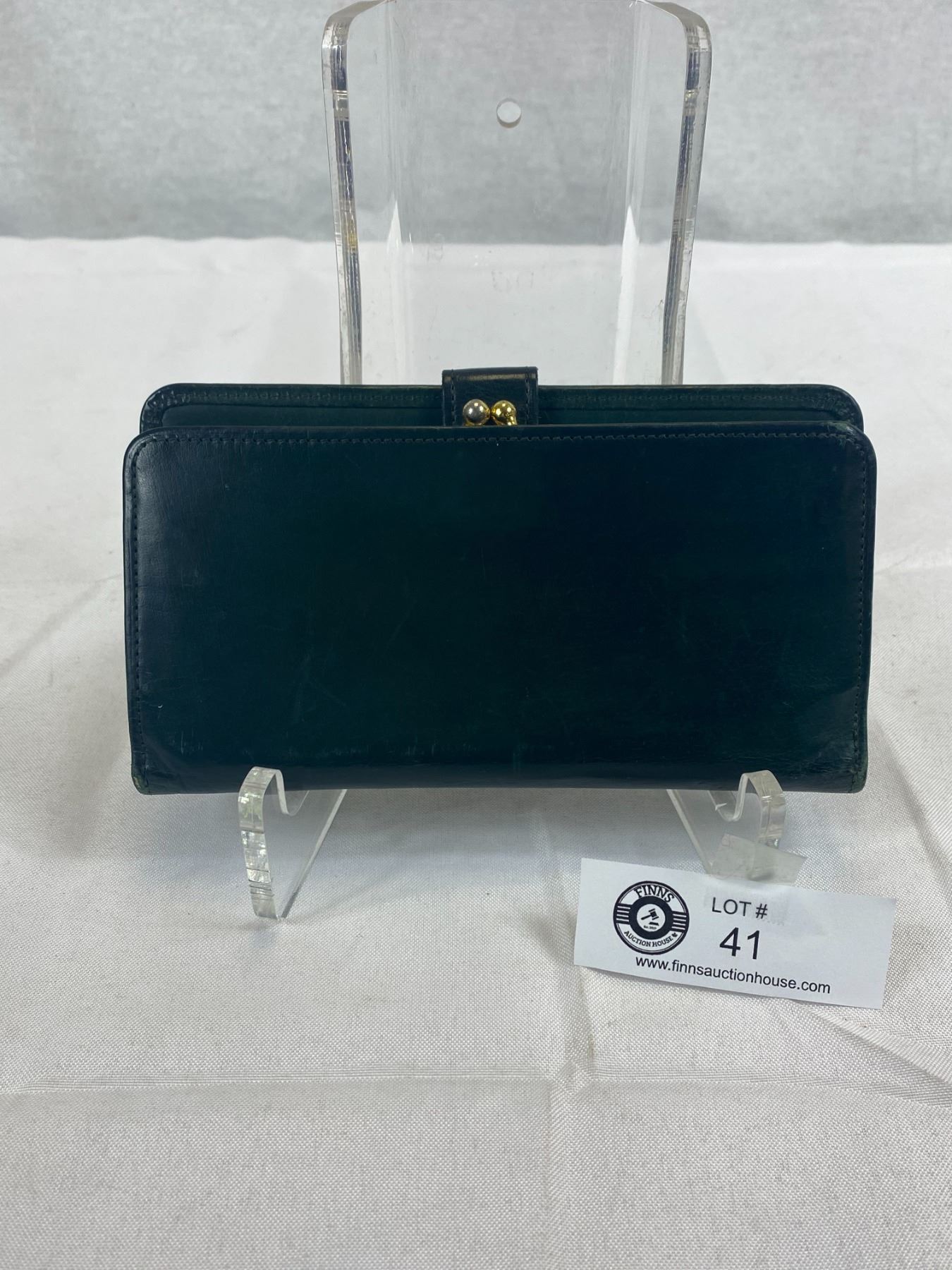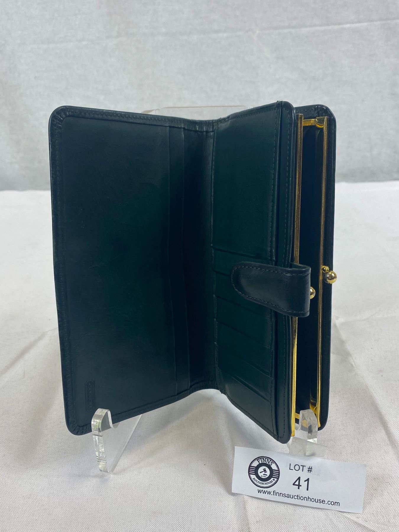 Rare Vintage Dark Green Leather Coach Kisslock Wallet, Good Condition