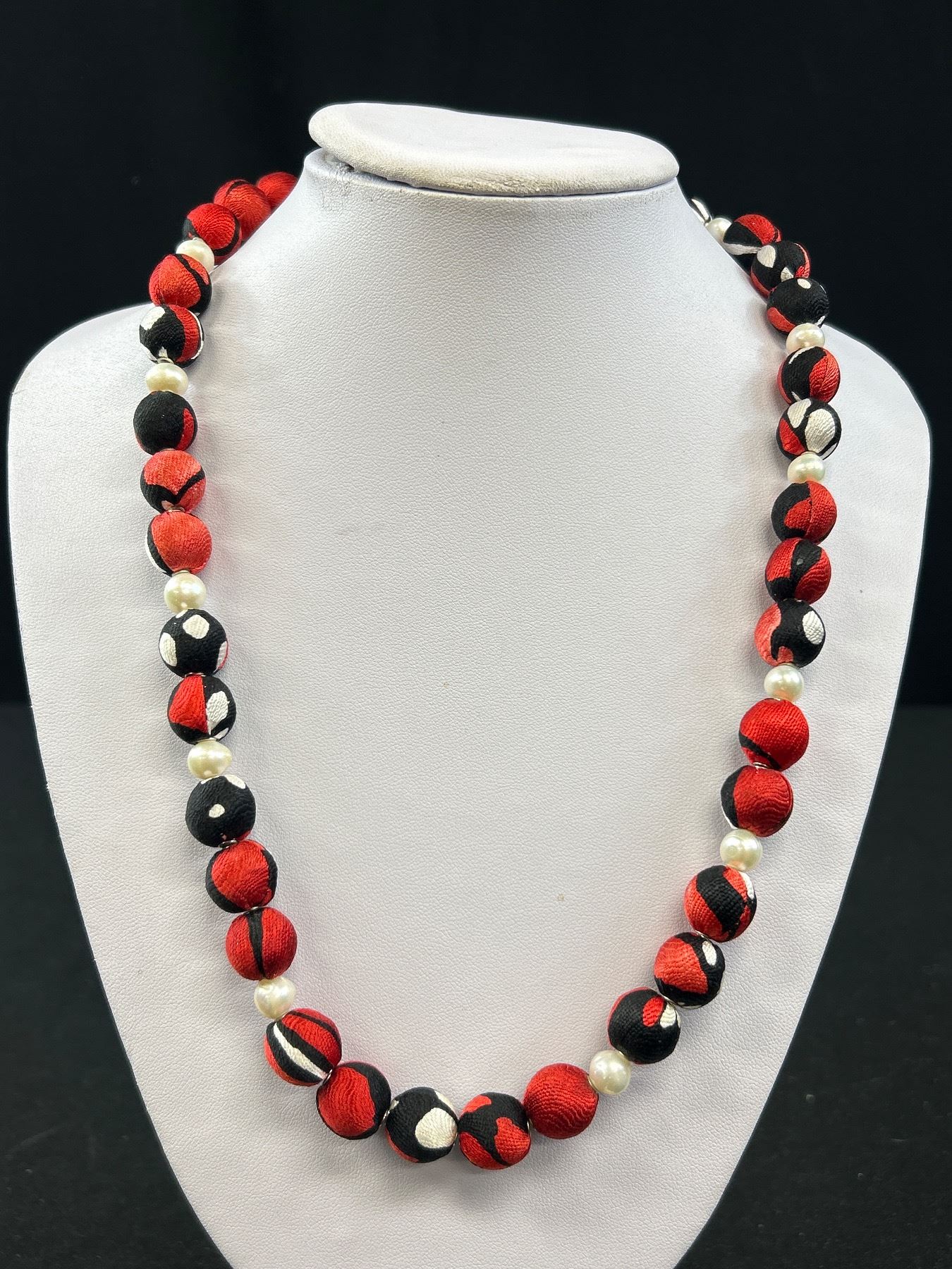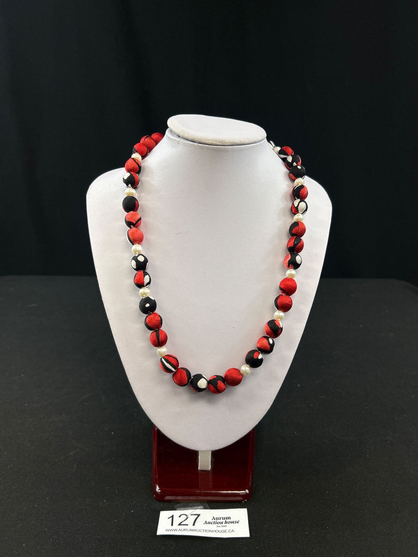 Rare Vintage Signed Pineda Covalin Silk Beaded Necklace - Real Pearls, 925 Clasp 22" Long