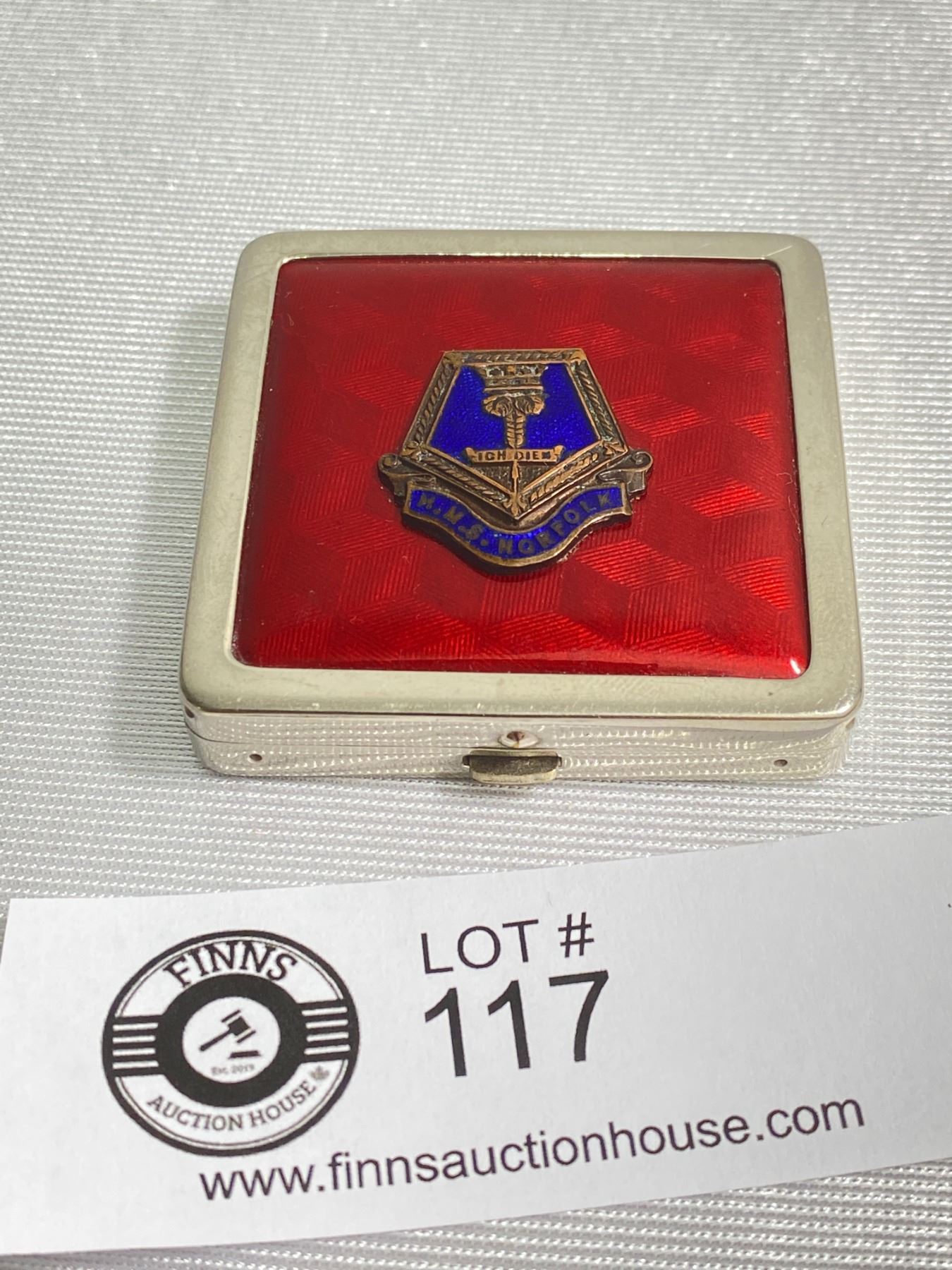 Rare WWII Sweetheart Compact H.M.S. Norfolk. Lovely Collector Piece Nice & Clean Unused interior. 2' X 2"