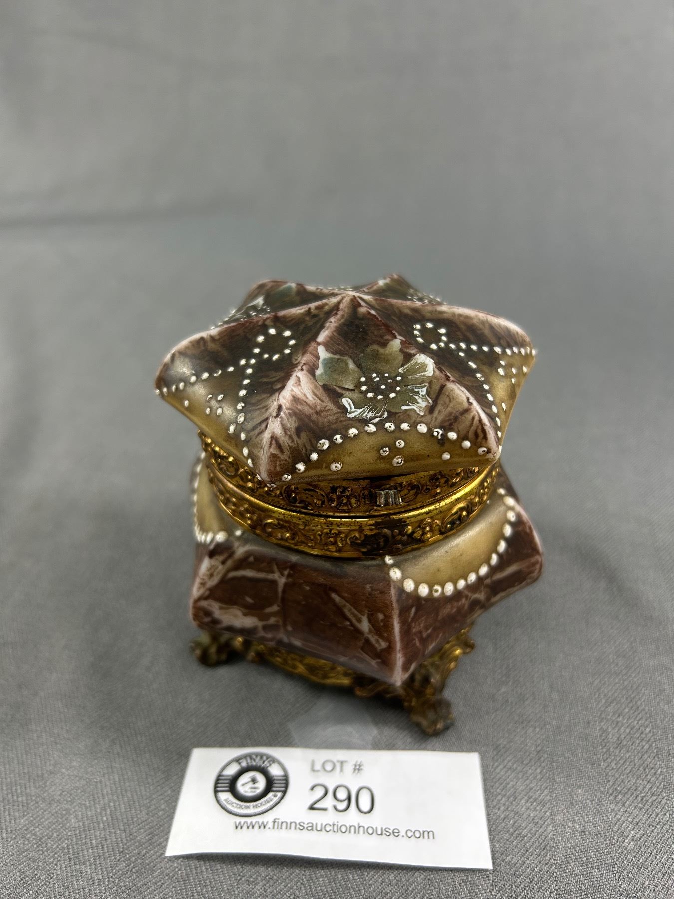 Rare "Wavecrest" Glass Lidded Box In Great Condition. Hand Decorated Gilt Metal Mounts. Circa 1900