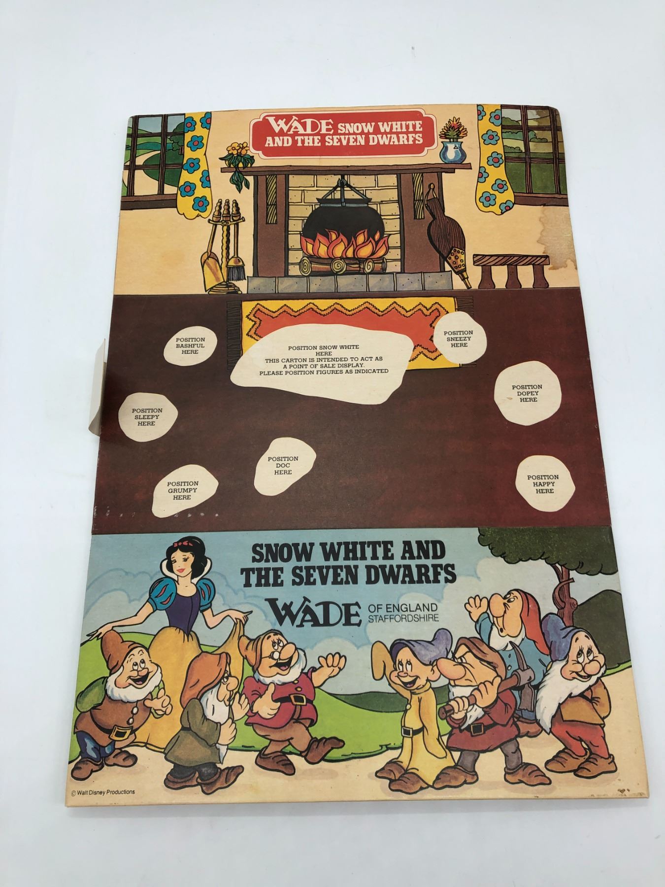 Rare cardboard store display of snow white & 7 dwarfs (made by wade) Approx 17" x 11 3/4" has never been folded, has small water stain on upper right side