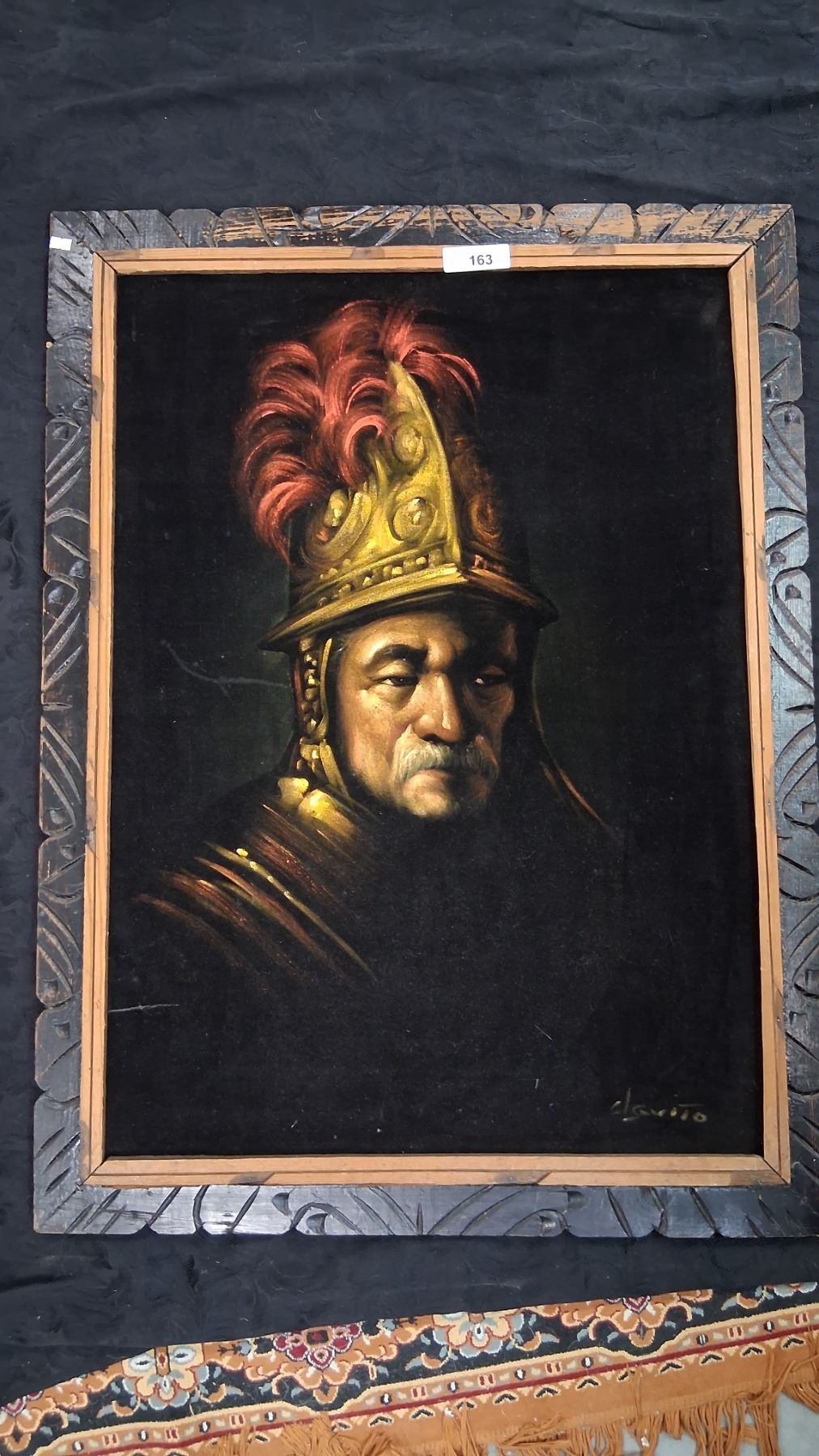 Rare vintage Mexican Conquistador velvet painting, nice frame, 41"x30"