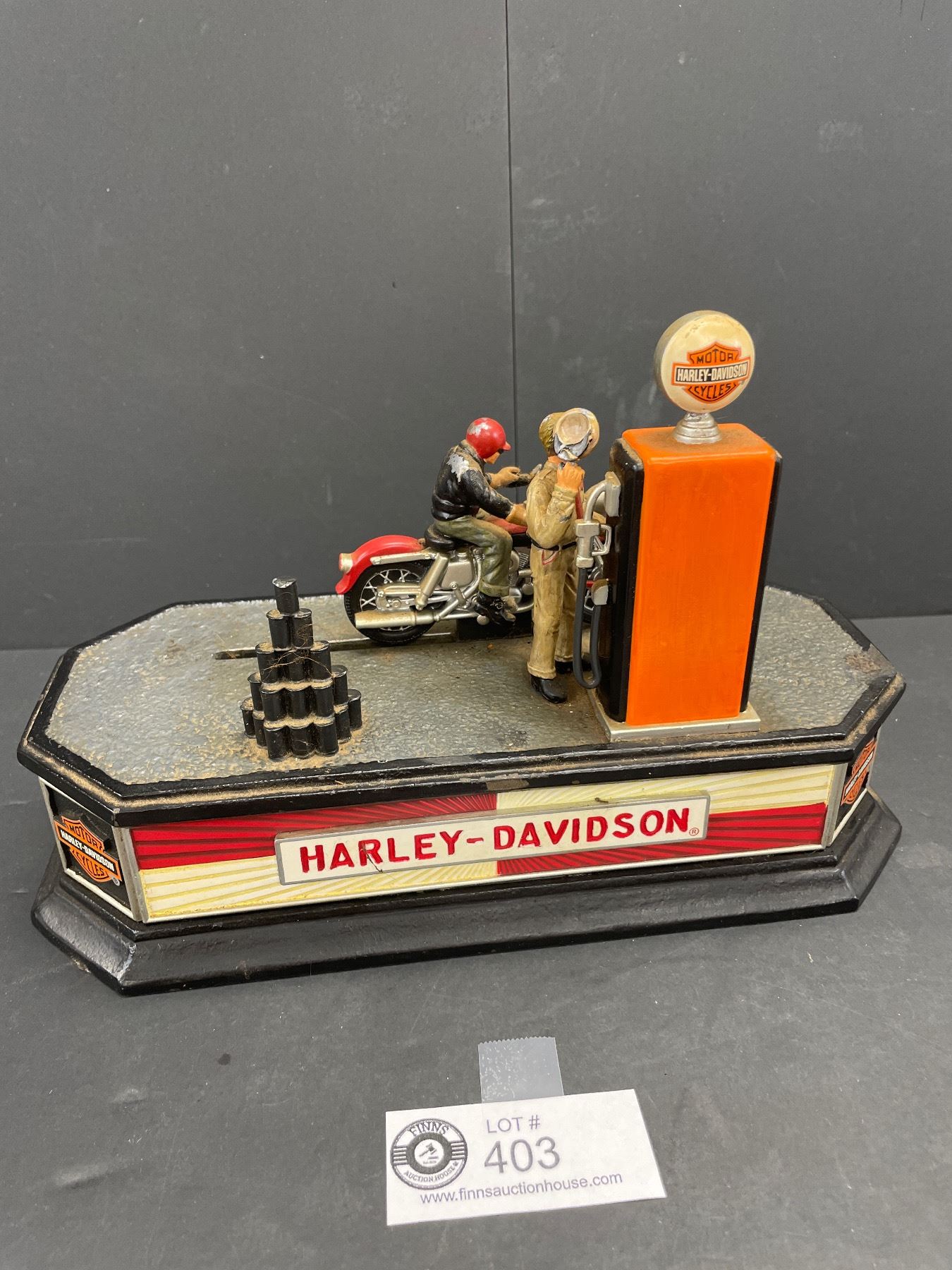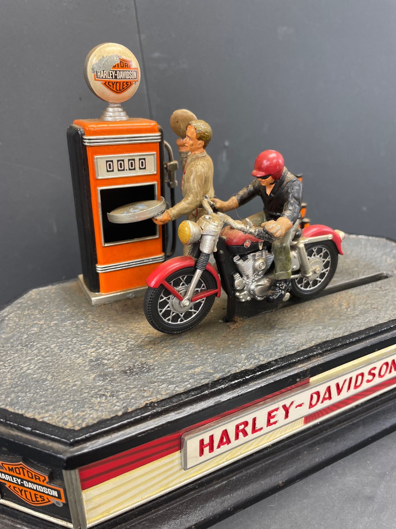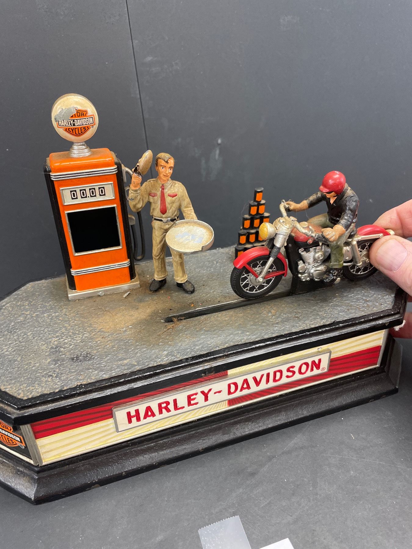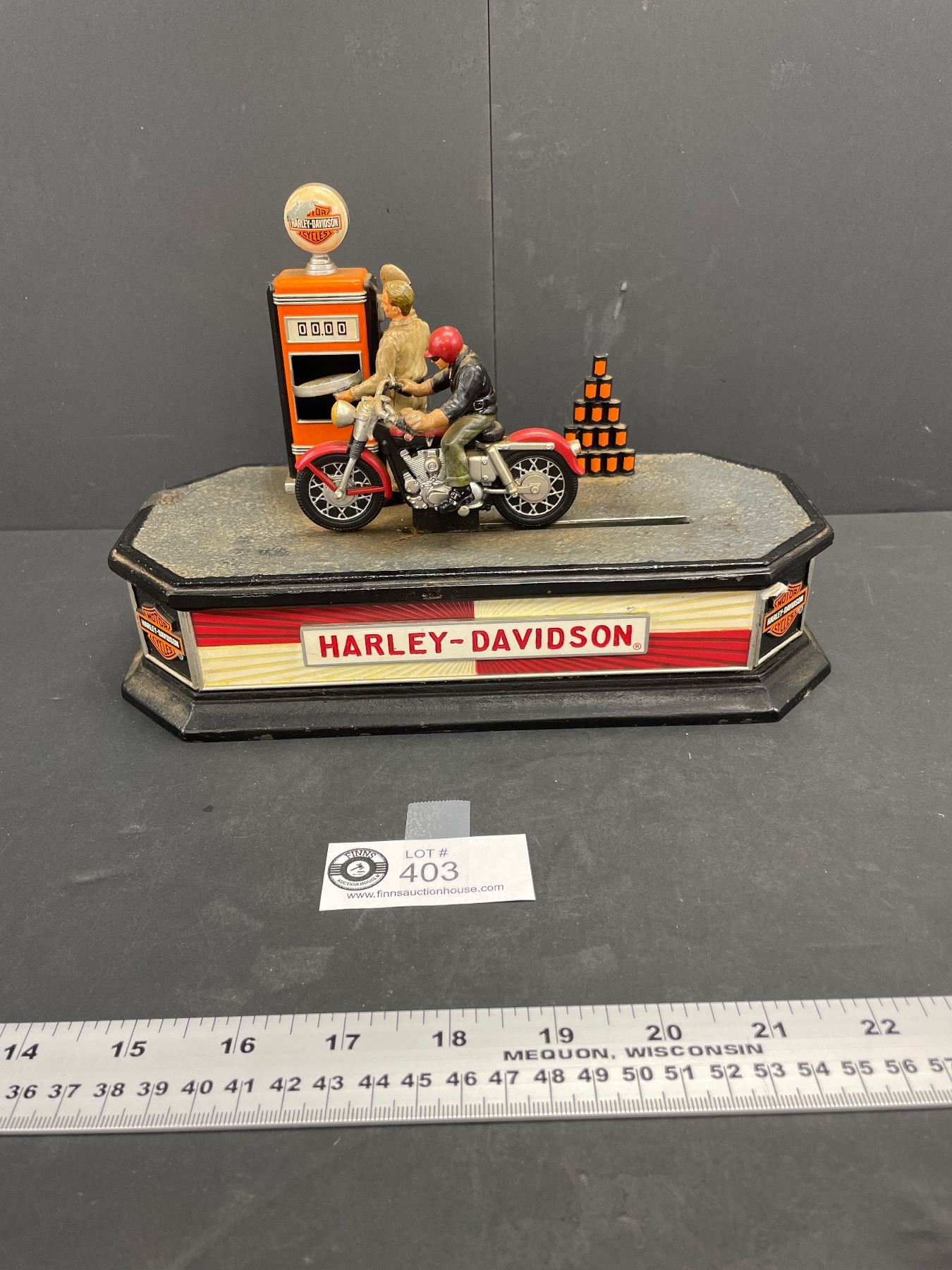 Really Cool Cast Iron Harley Davidson Franklin Mint Mechanical Bank in Good Working Order