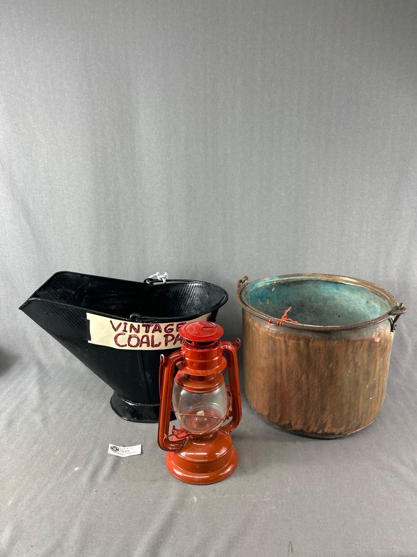 Red 11" H Kerosene Lantern, Vintage10.5" Copper Pot & Repainted 18" L Vintage Coal Bucket